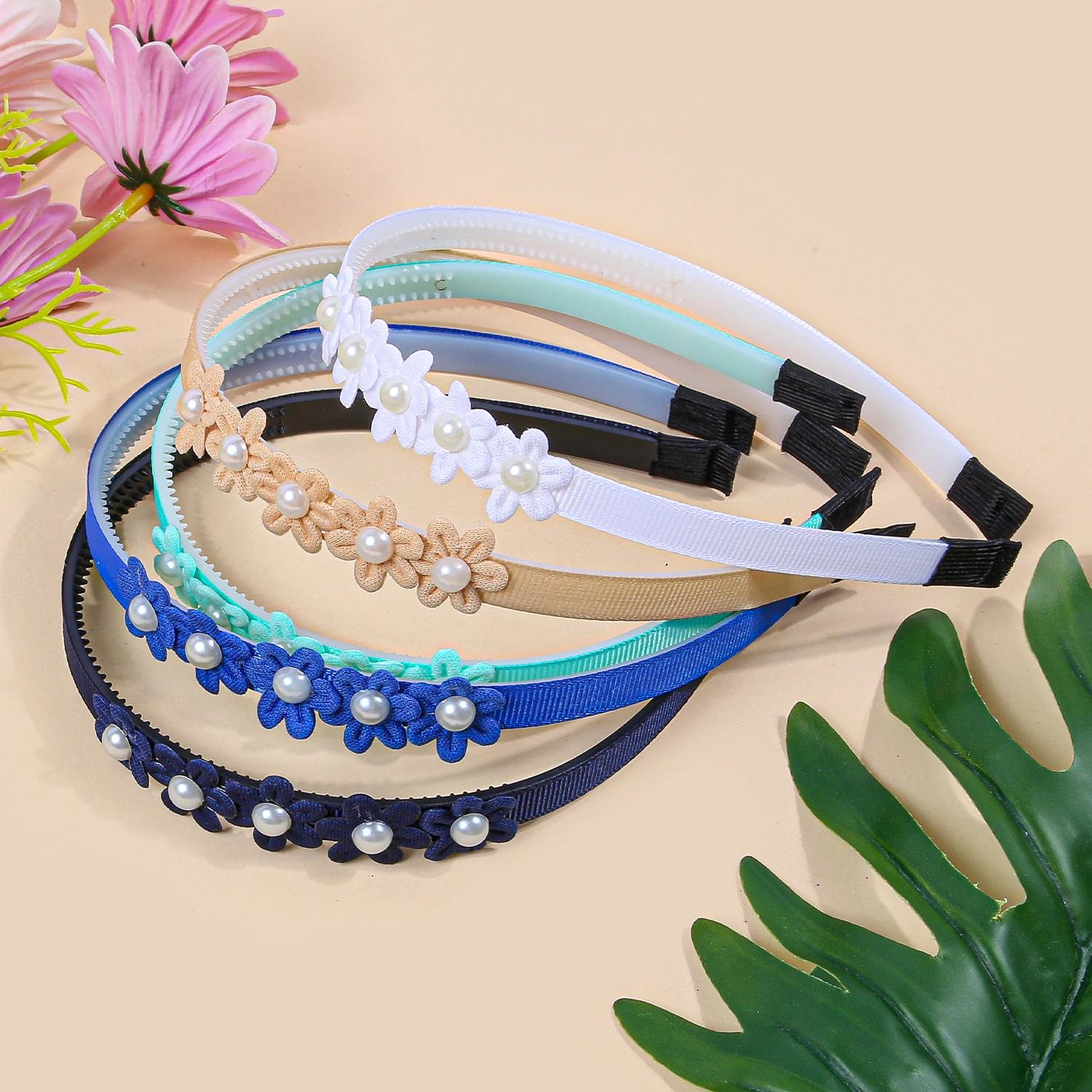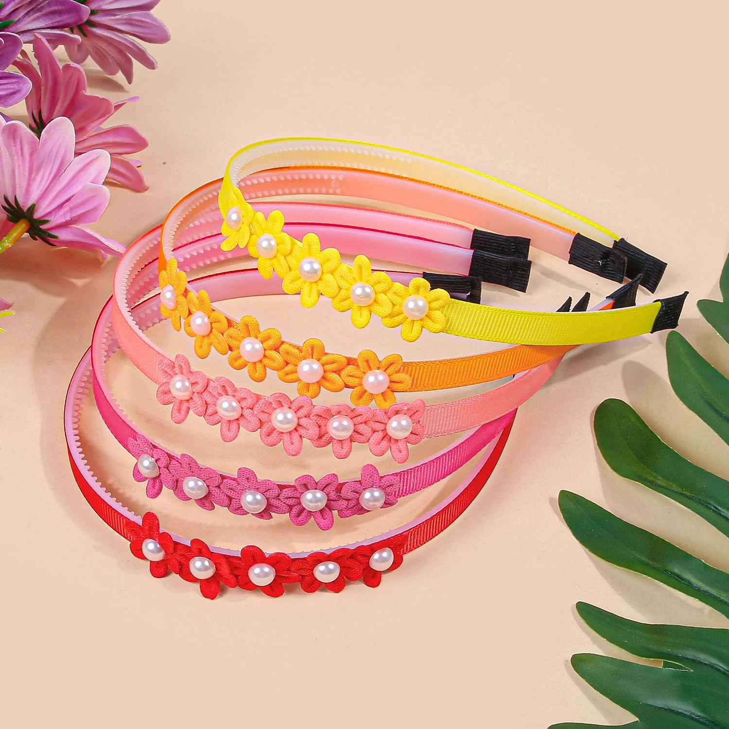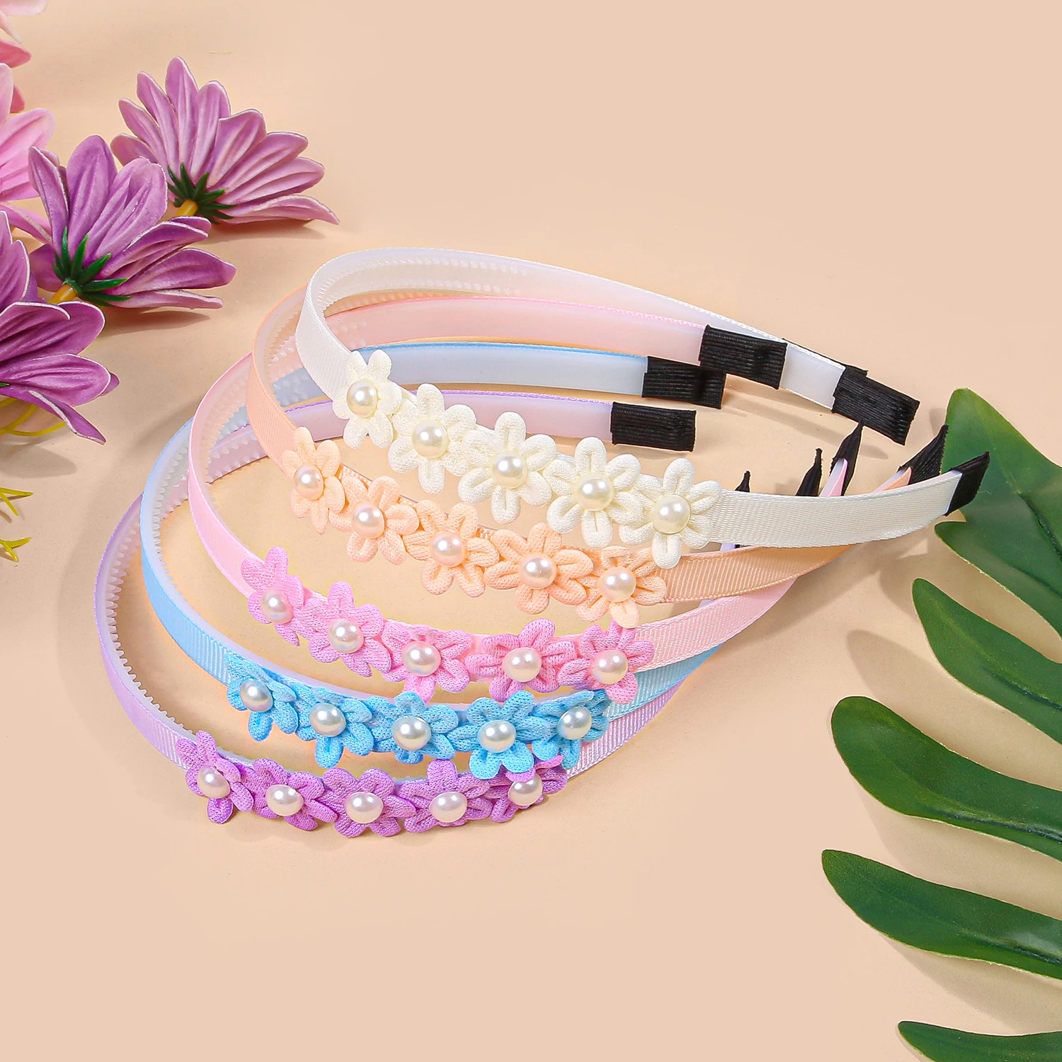 4 pieces of cute pearl flower-shaped plastic headbands for girls and women, flower-shaped headbands for children, hair accessories for parties.