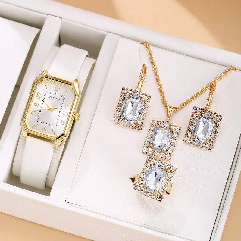 6/5/1 piece of women's square watches, luxury fashion brand ladies quartz wristwatch, classic jewelry set, simple watch, Women's Watches.
