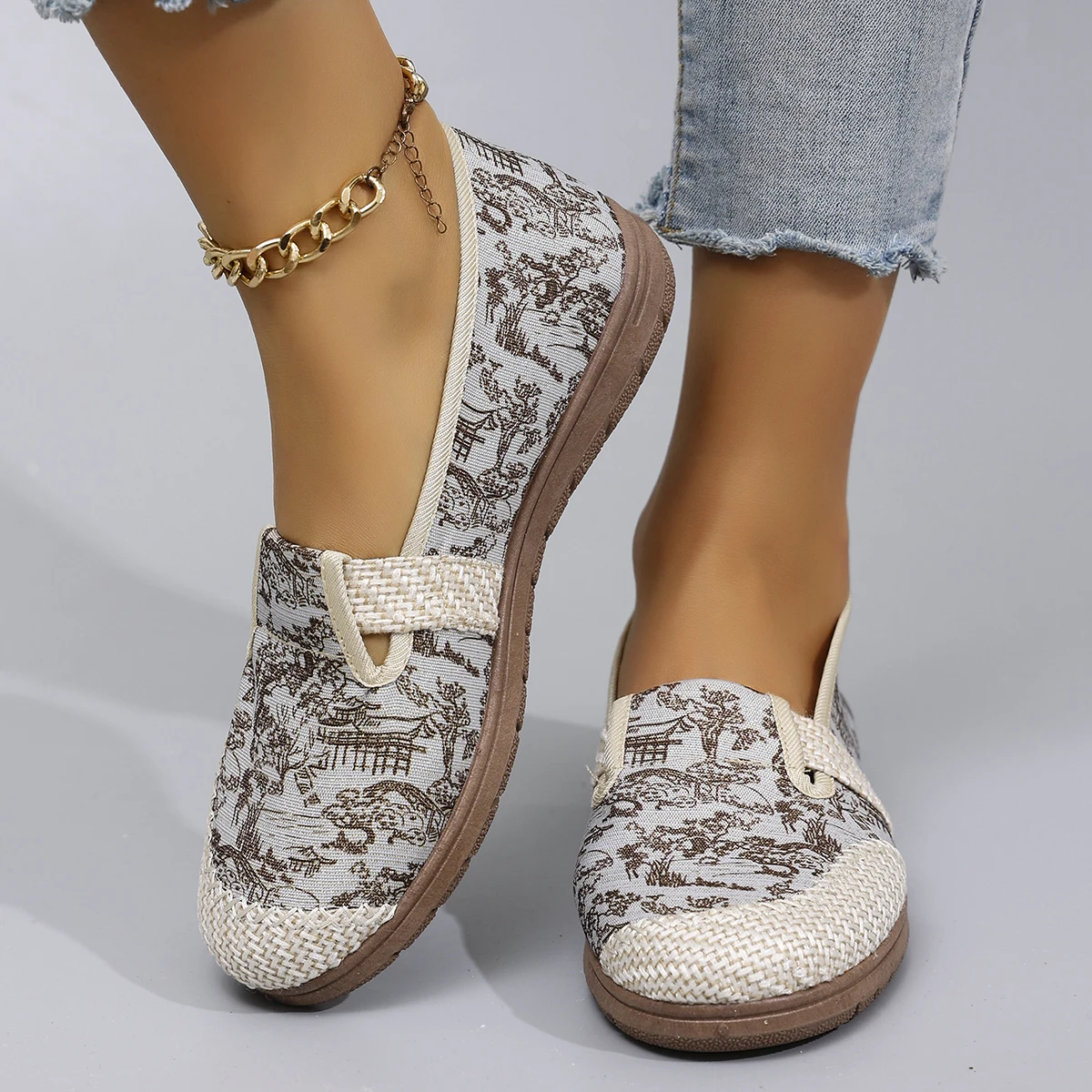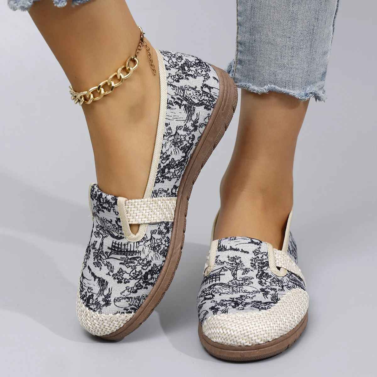 New spring casual women's sports shoes, comfortable, breathable, lightweight, and wear-resistant, flat shoes with a soft sole and a single shaft.