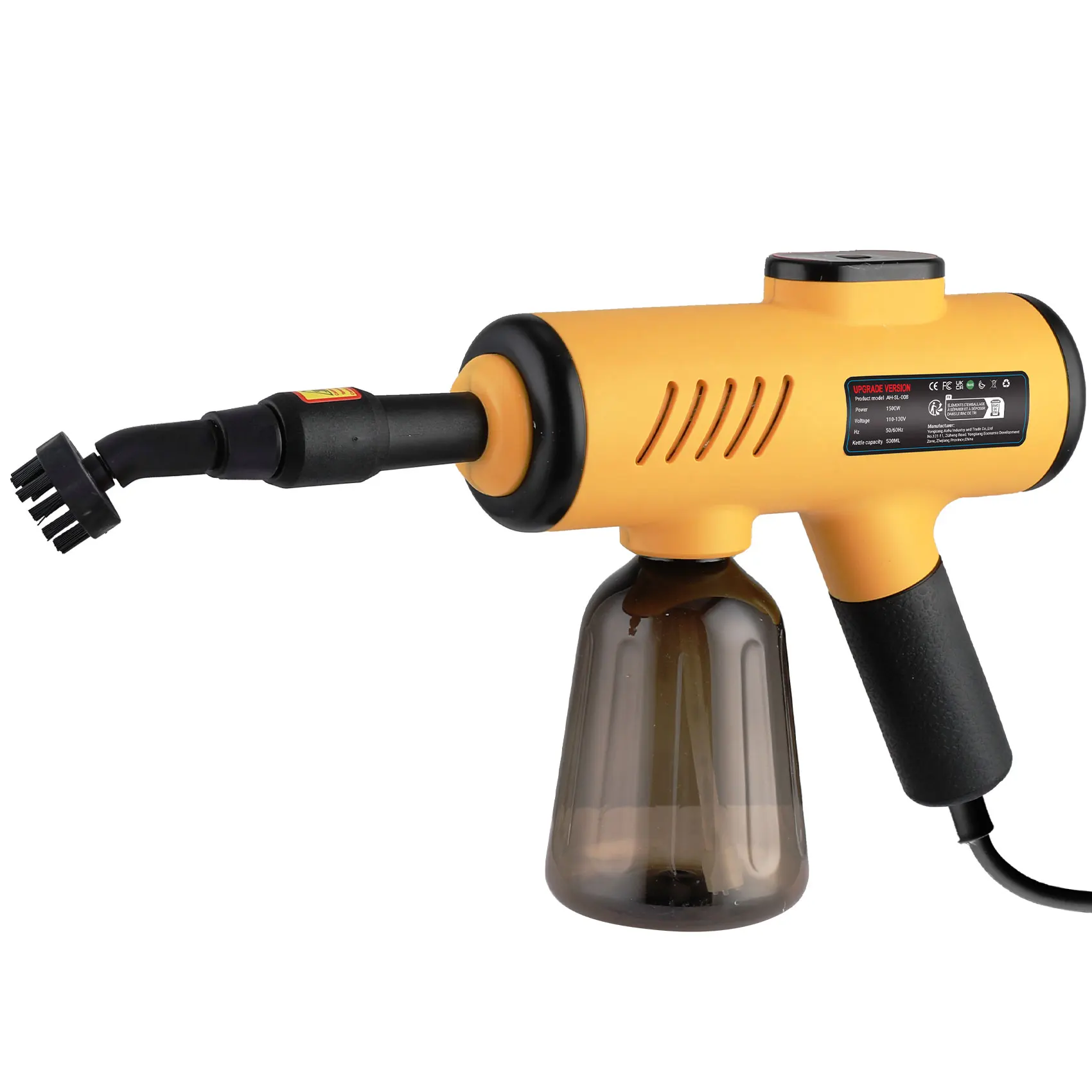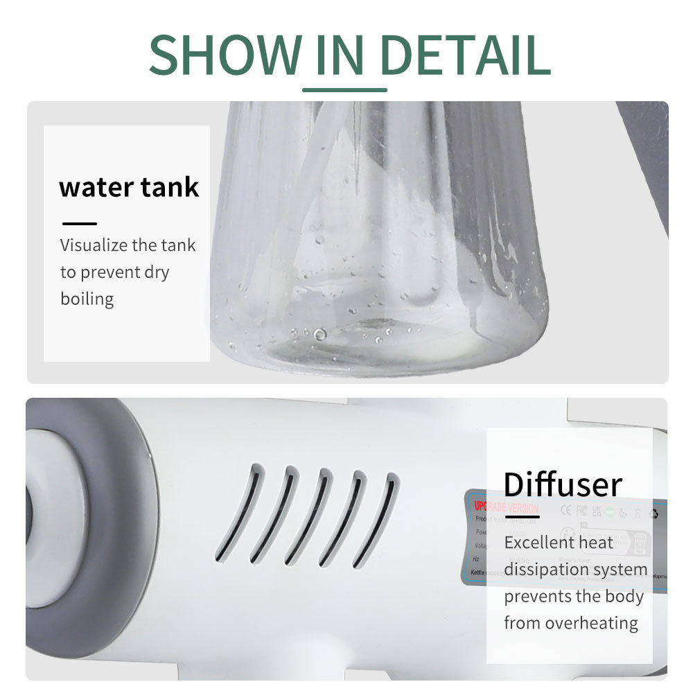Capacity: 600 ml Frequency: 60 Hz Water consumption: 66 ml/min Steam temperature: ≥105 High temperature and high pressure