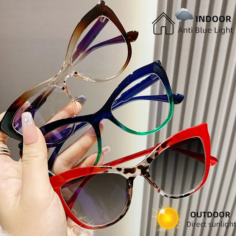 Brand design cat eye reading glasses for women, red leopard large frame computer anti-blue light presbyopia glasses.