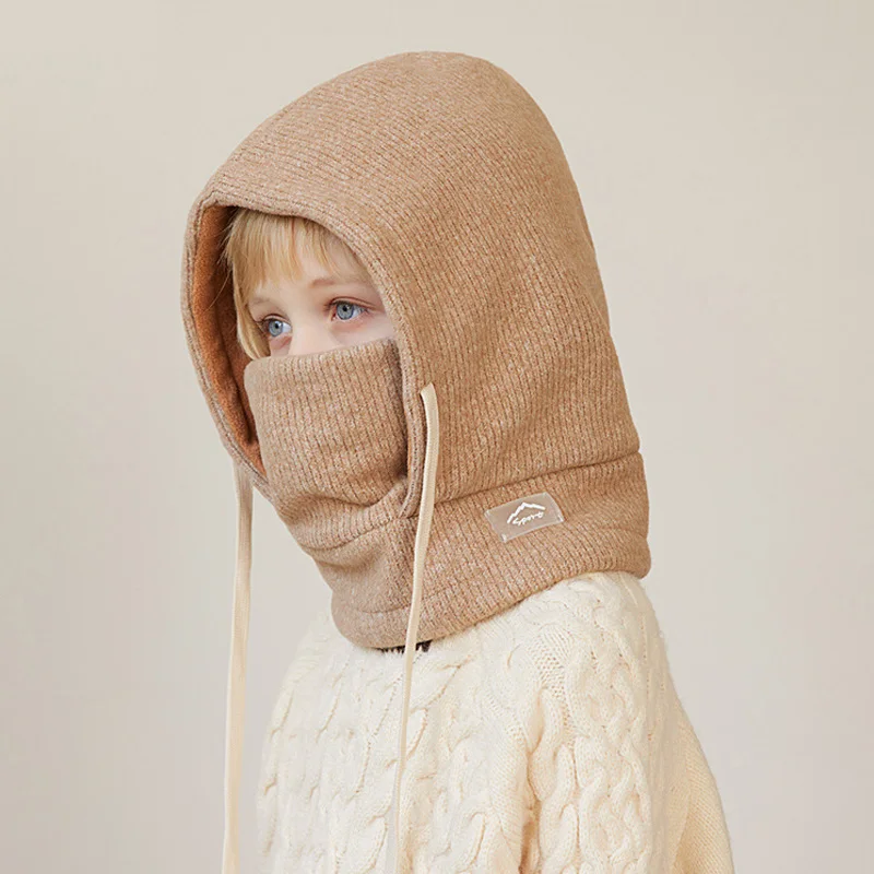 Children's winter hat scarf mask one piece ears neck warmer kids beanie hats for skiing wool lining for baby girls boys hat 4-10Y