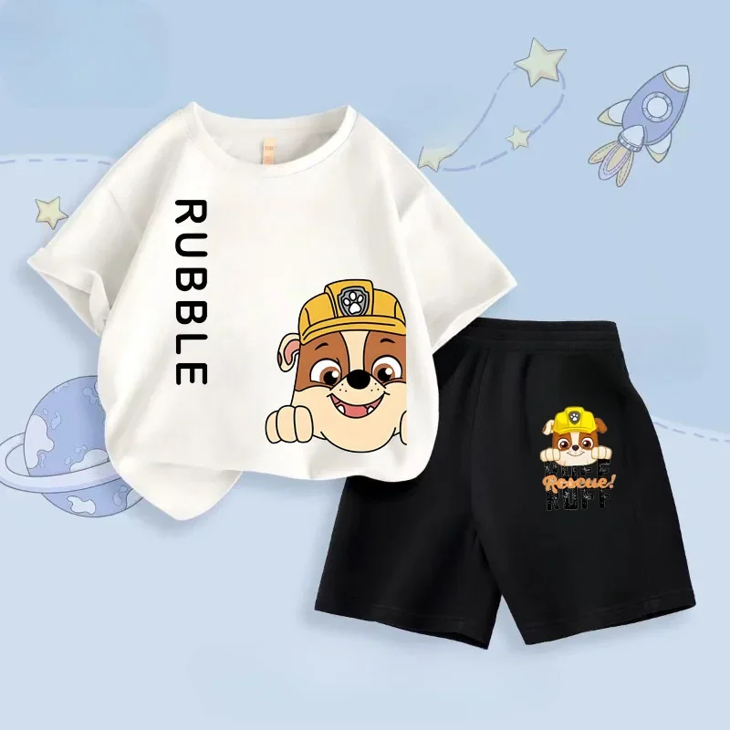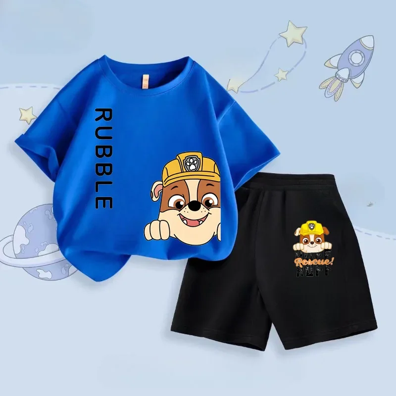 Boys' Paw Patrol short sleeve top sets, T-shirt and pants 2-piece suit, children's casual summer clothes, new baby.