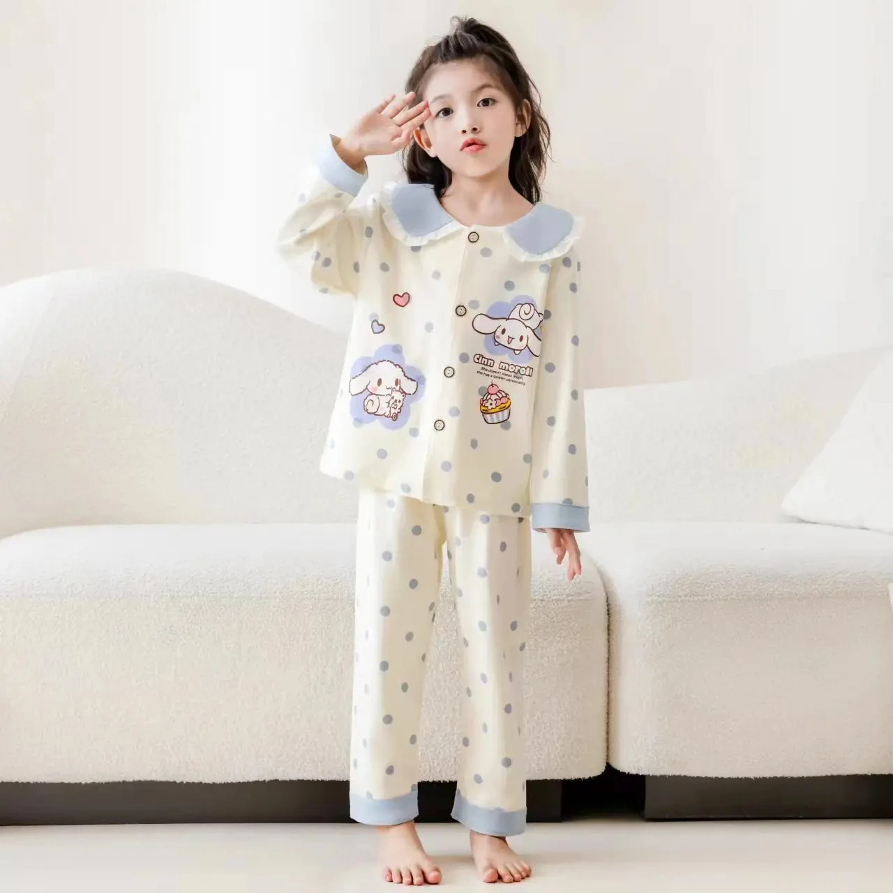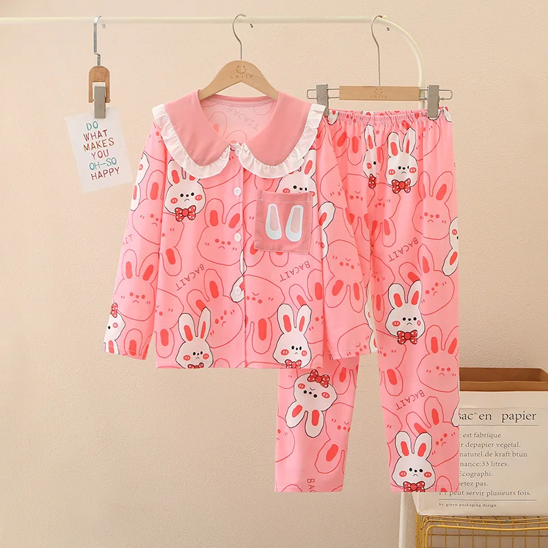 Children's long-sleeve pajamas, cute cartoon print tops and pants set, comfortable and loose sweater.