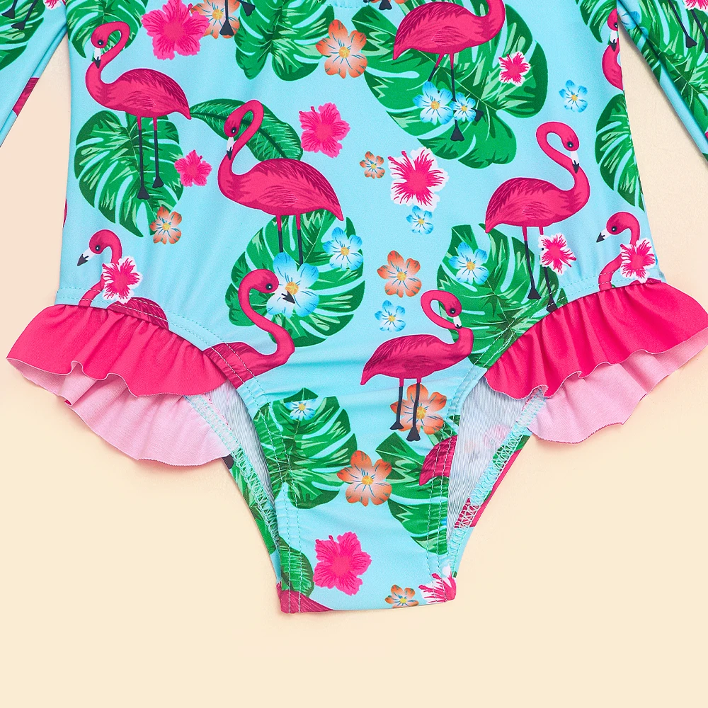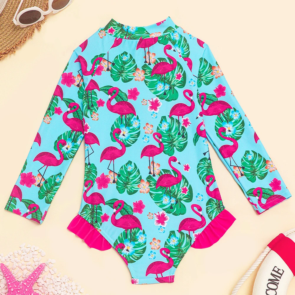 Girls one-piece long sleeve children's swimwear ruffled swim shirts