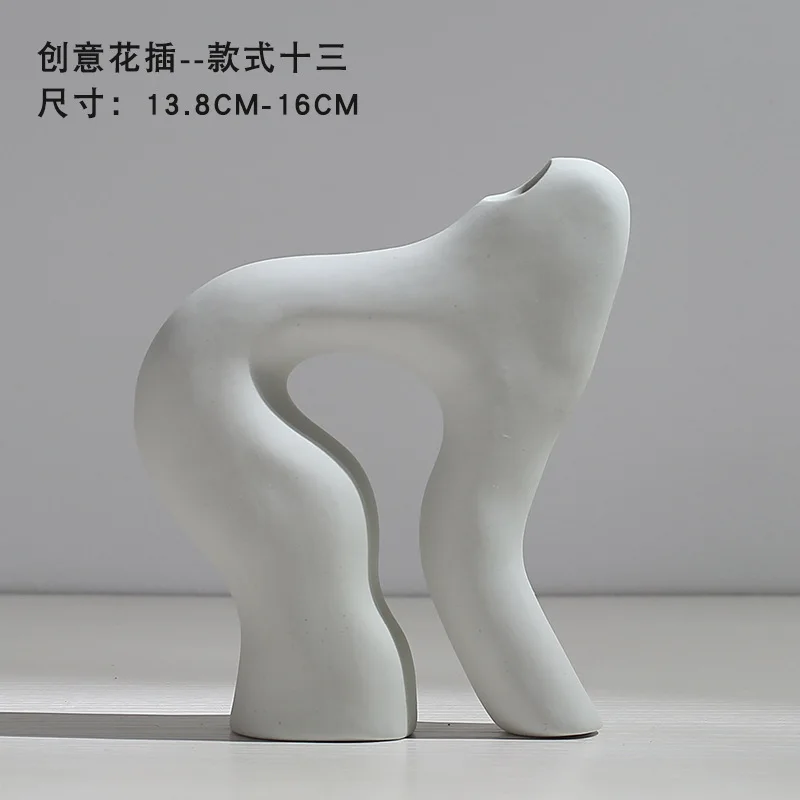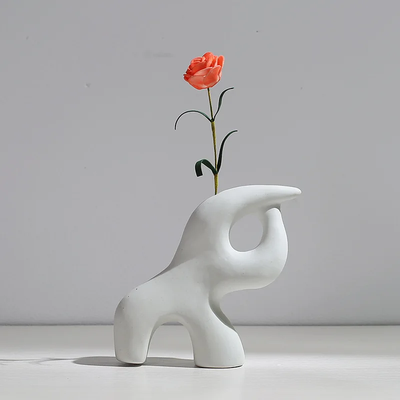 Ceramic vase for arranging dried flowers in Scandinavian style, a simple creative water flower arrangement, home decor for the living room.