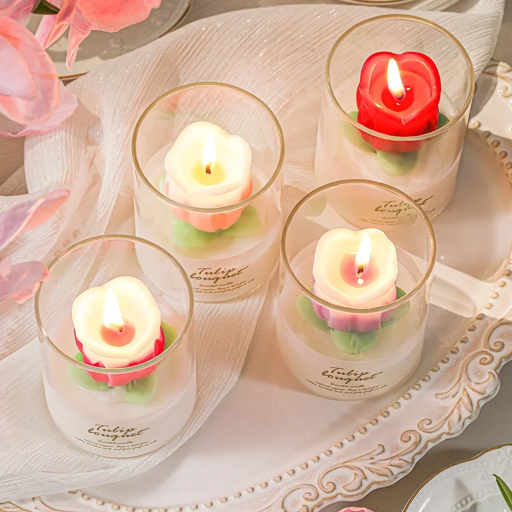 Handmade glass tulip candle jar scented candle soy wax wedding birthday candles home party decor