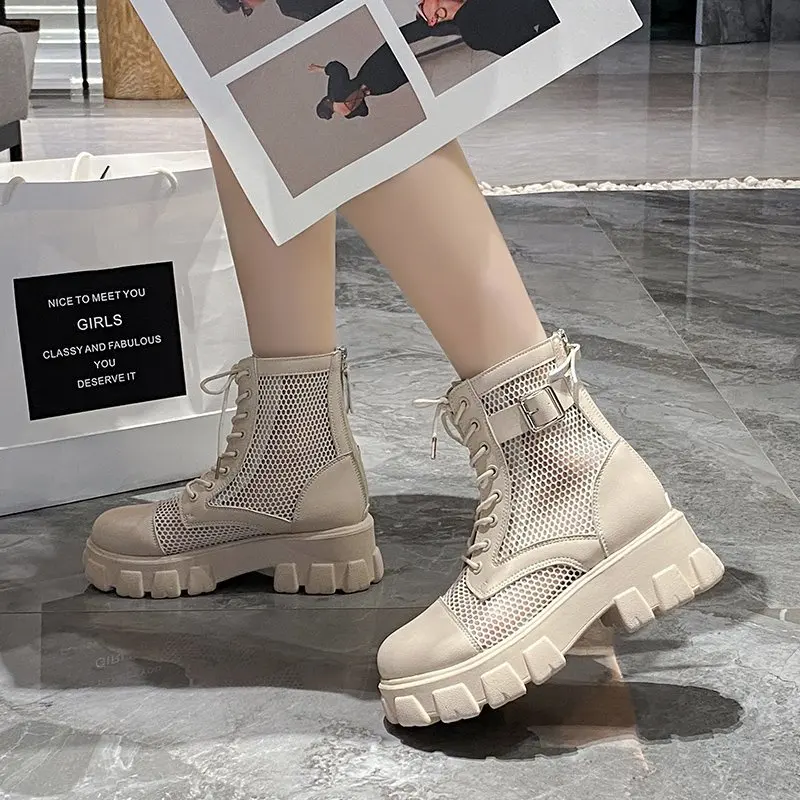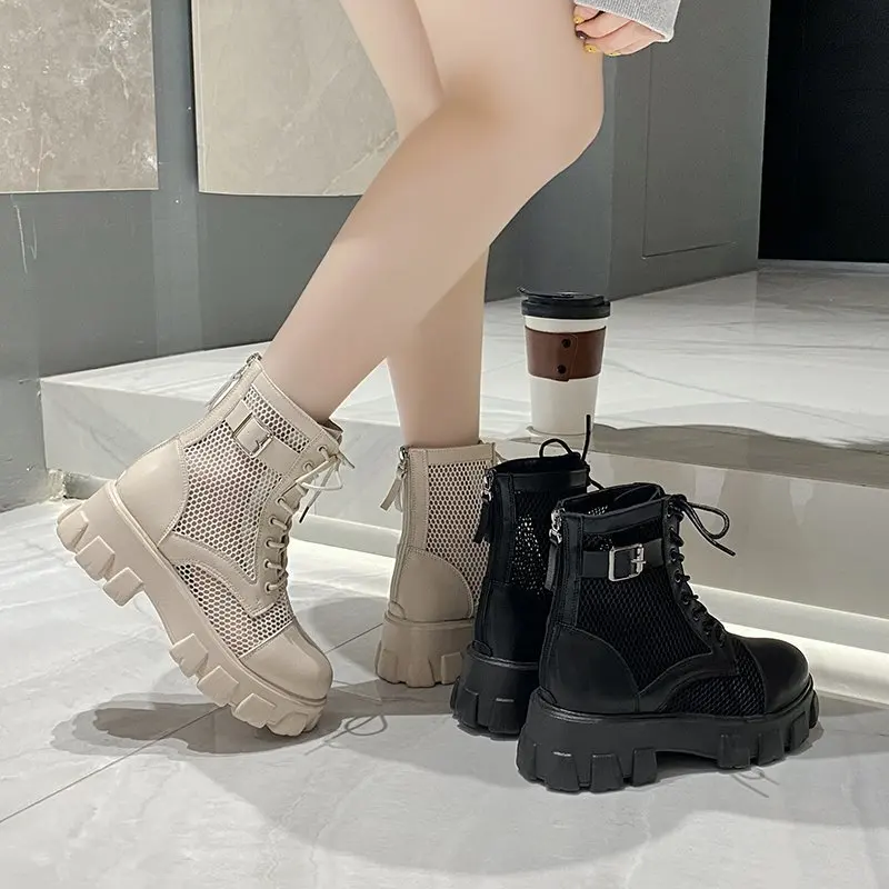 Aphixta 6 centimeters thick sole summer breathable platform shoes for women, large size buckle 43, lace-up, waterproof height-increasing shoes.
