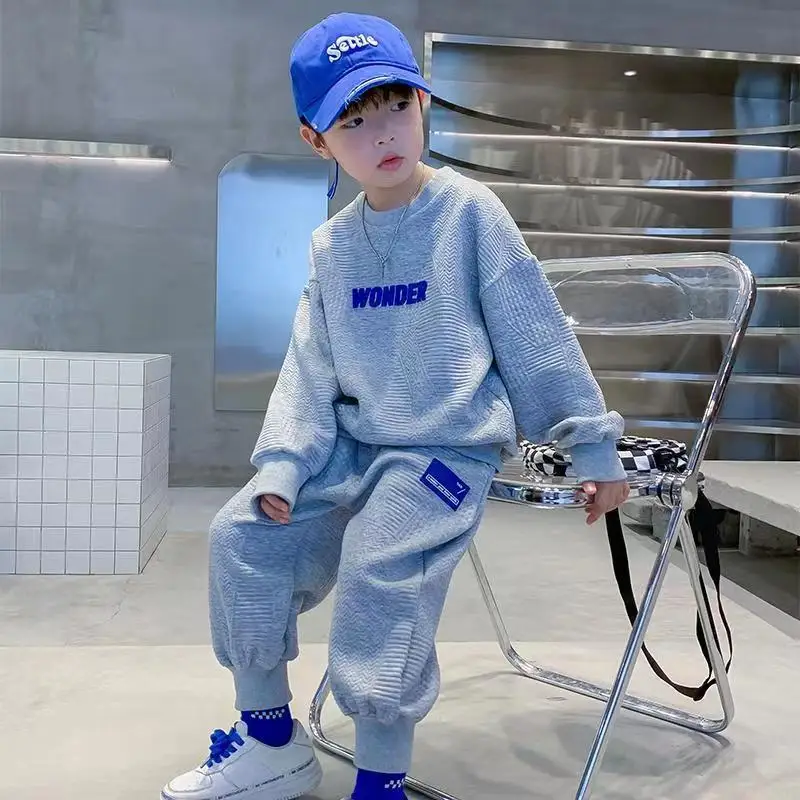 Printed sports suit for boys with long sleeves, soft and comfortable loose pants, new running workout set for spring and autumn.