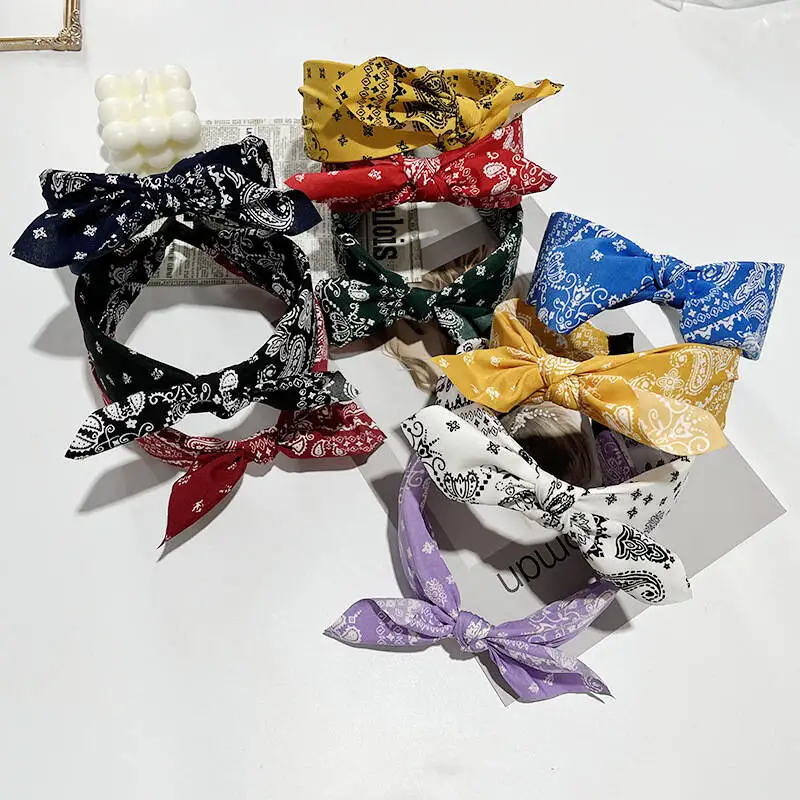 Boho Bow Print Headbands for Women Wide Brim Hair Bands Vintage Stylish Hair Hoop with Knot Head Covers for Girls Hair Accessories