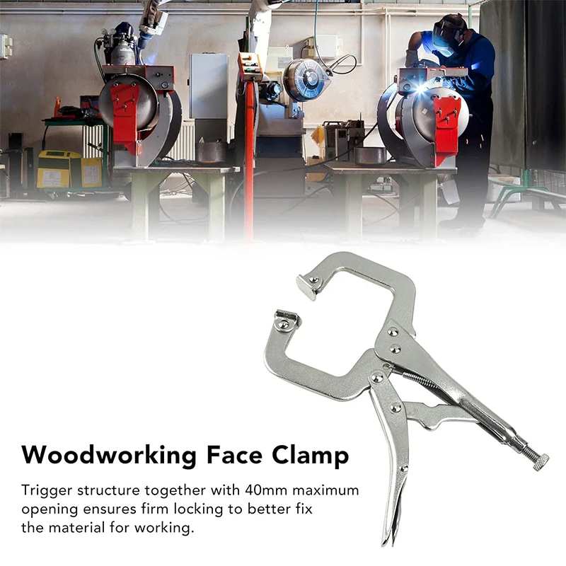C clamp welding clip wood repair with folds pliers grip locking jaw rotating plate woodwork steel alloy hand tool spring clamp