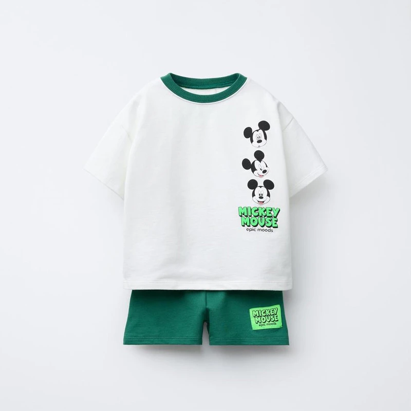 Disney Kids Clothing Loose T-Shirt 2 Piece Set Boys All Short Sleeve White Cartoon T-Shirt Shorts Children's Clothes