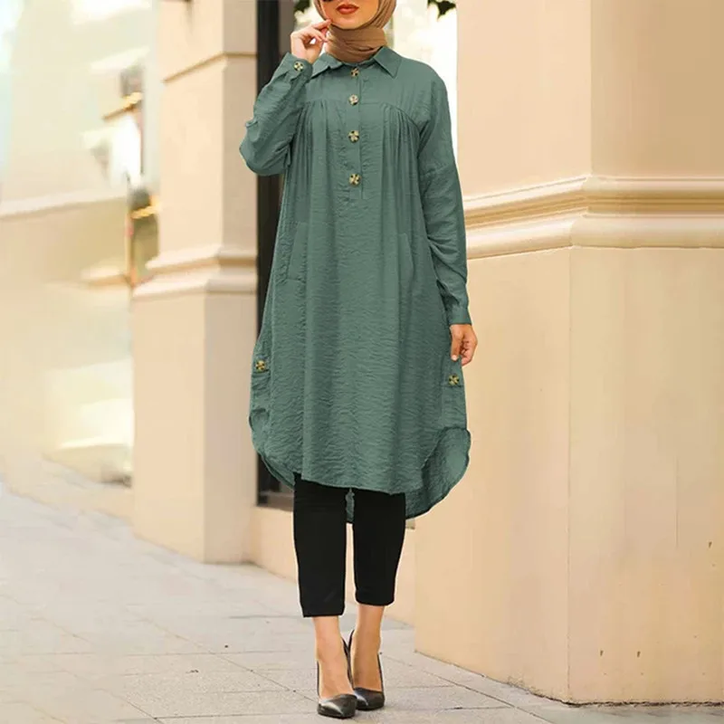 New summer Muslim blouse for women, simple cotton linen long shirt, Saudi Arabia, Islam, women's tops, lady's A-line shirt dresses.