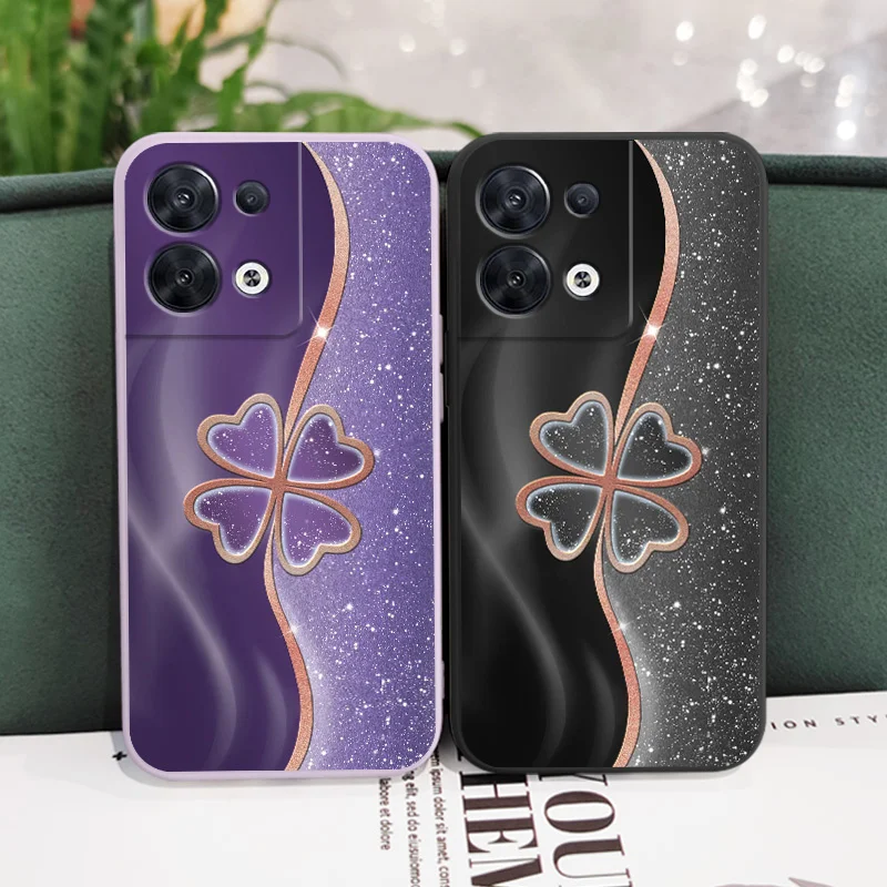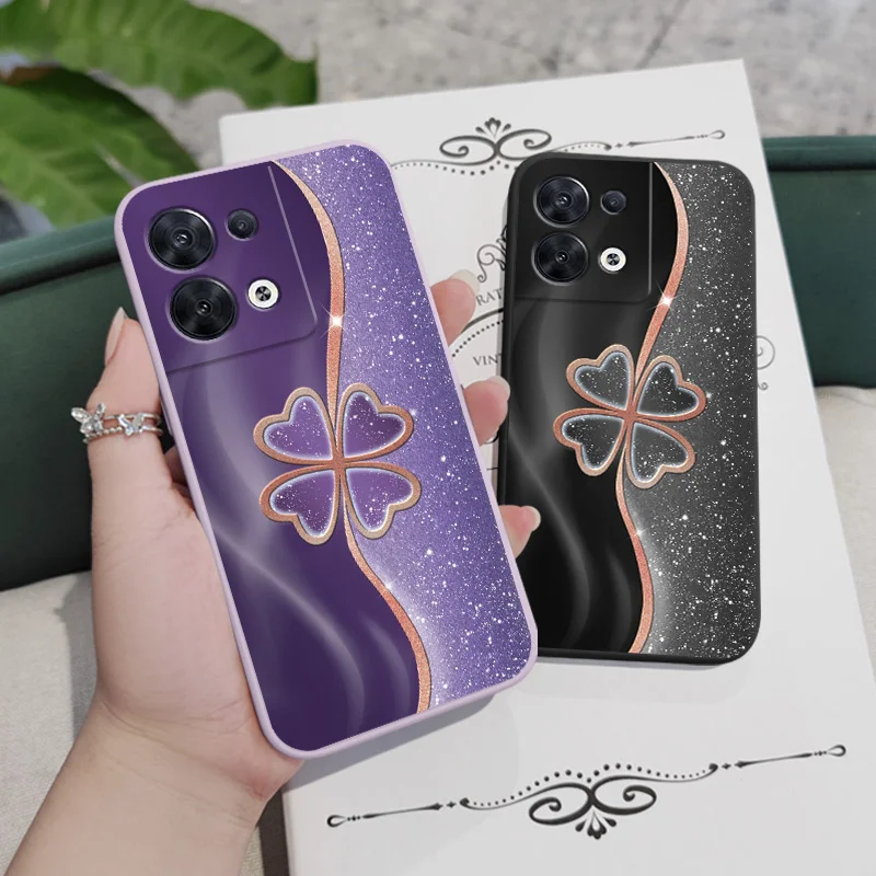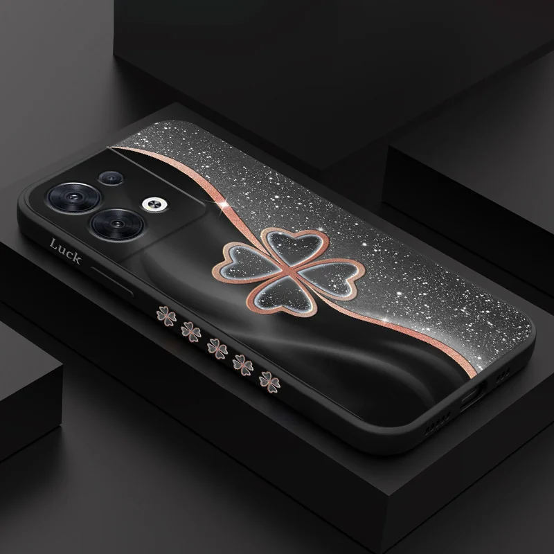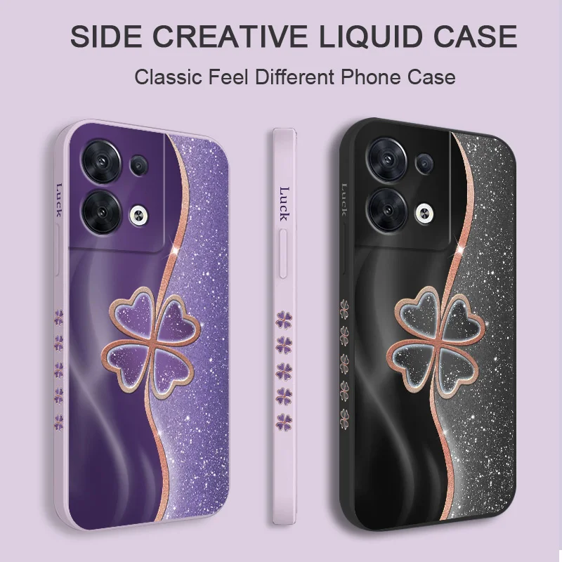 Lucky grass phone case for OPPO, liquid silicone cover, Reno 10, 8, 8T, 8Z, 7, 7Z, 6, 5 Pro, 4G, 5G, F19, F9 Pro Plus