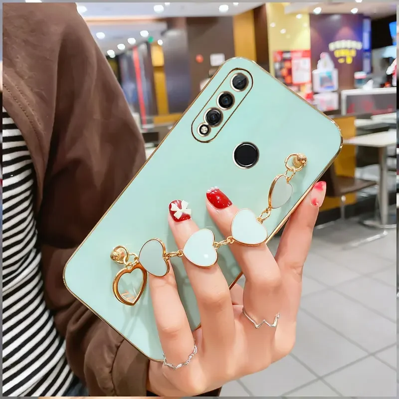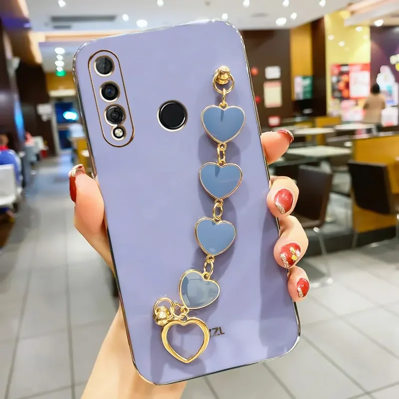 Straight golden case for Huawei P40 P30 Lite Y9 Prime 2019, luxury heart-shaped case for Huawei P50 Y7A Y9S, thermal polyurethane cover.