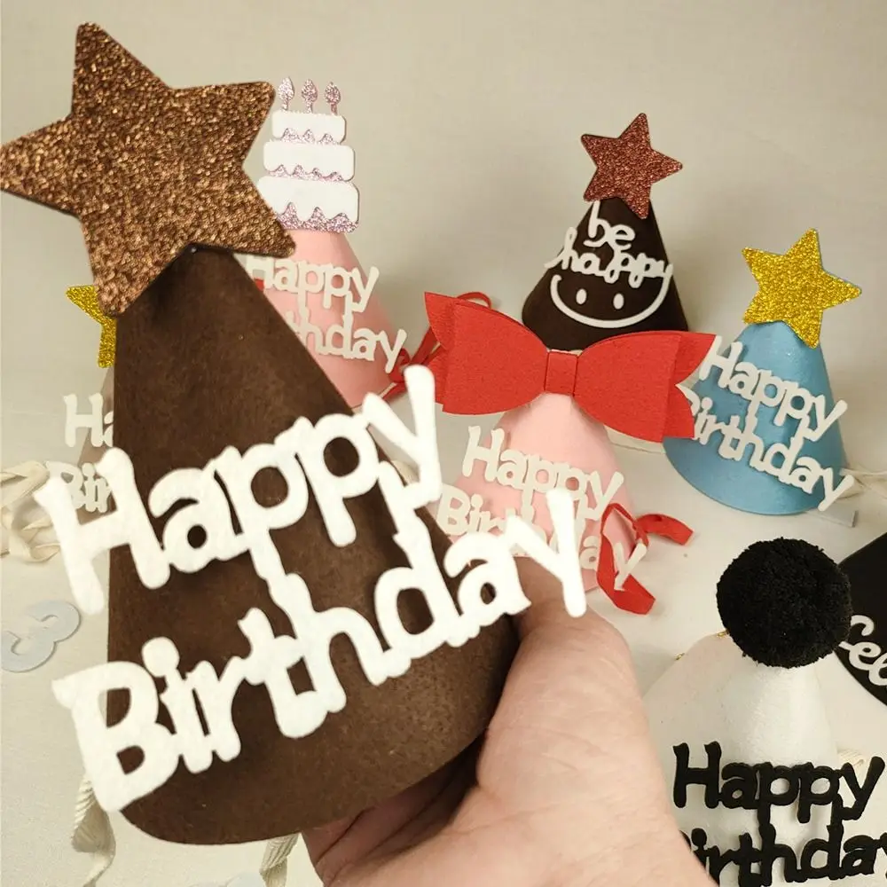 Creative Happy Birthday Hat Cute Bowknot Cone Headband Cap DIY Handmade Party Decor Photo Prop for Adult Kids