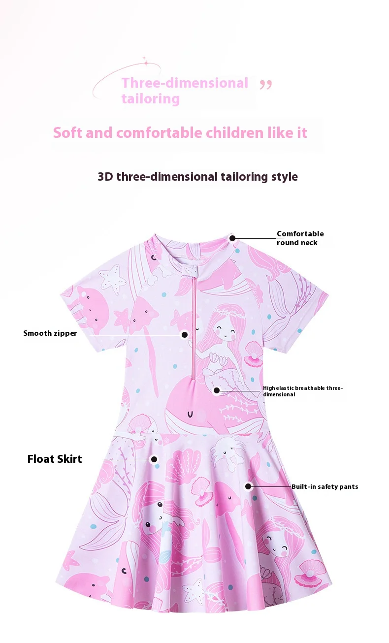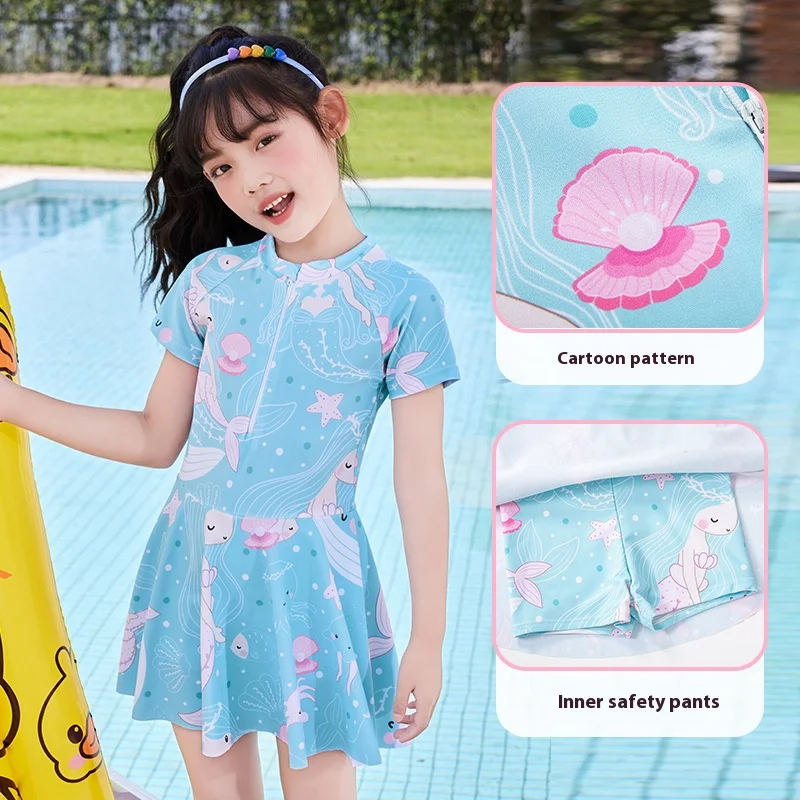 Creative cartoon blue dolphin print swimwear for girls, children's swimwear, medium, large, one-piece, small,