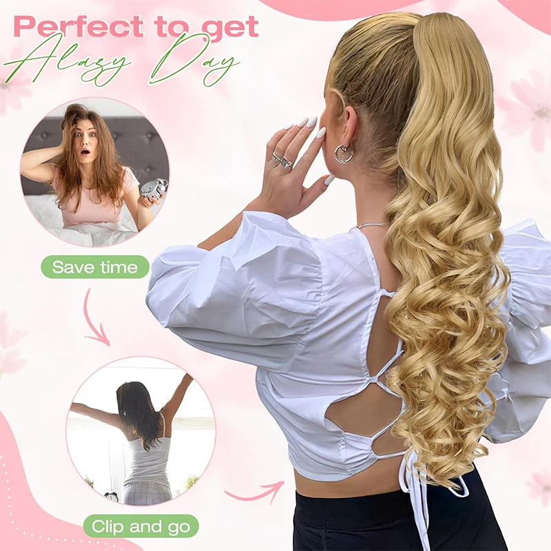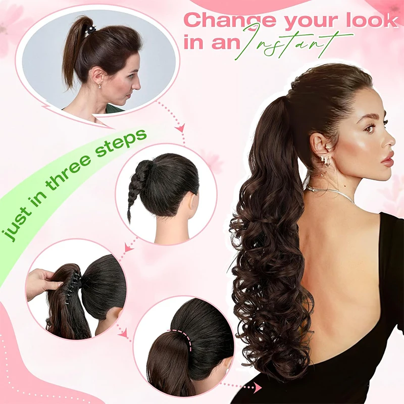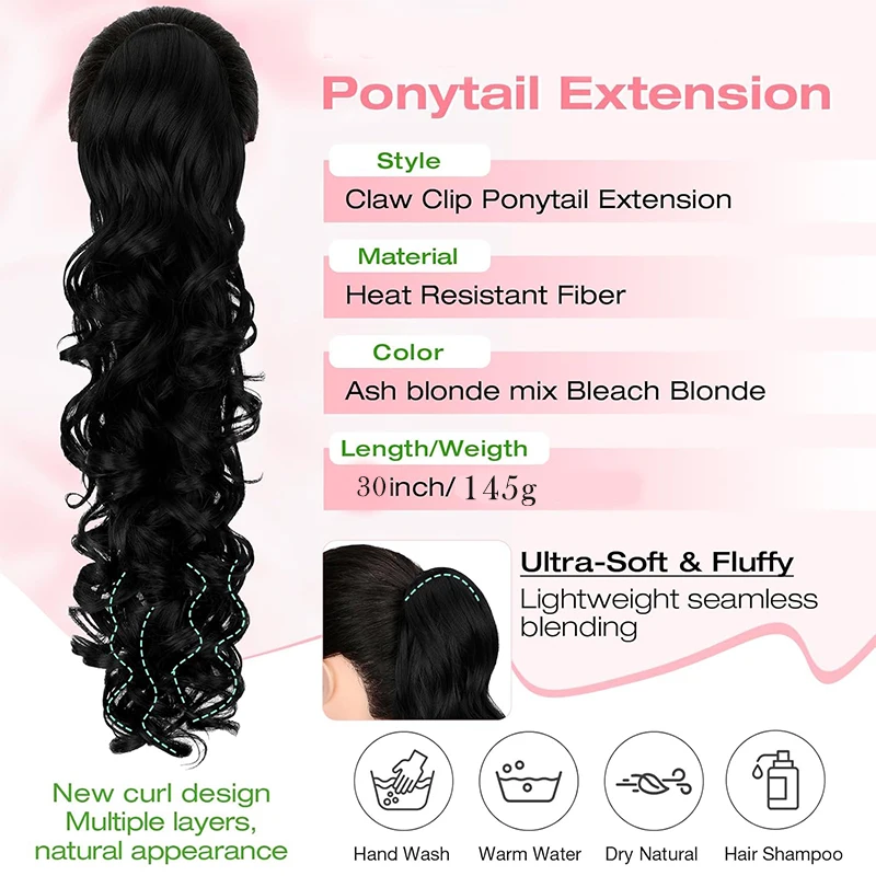 30'' Ponytail Accessories Claw Clip Long Curly Wavy Ponytail Synthetic Hair Extensions Ponytail for Women