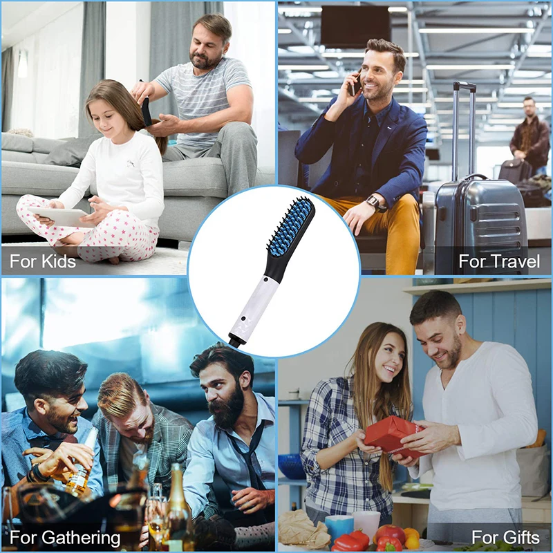 【Multi-Functional Beard Straightening Brush with Long-Lasting Effect】 - The beard brush is specially designed for men to achieve the best results for different styles of all beard and hair types, whether straightening, thickening, or simply brushing. The advanced PTC technology provides rapid and even heat distribution. It heats up to 200℃ in one minute.