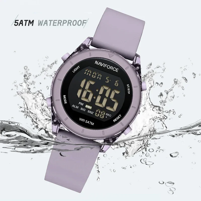 NAVIFORCE NF7108 Casual Watch for Women, 50 Meter Waterproof, LCD Screen, Digital Display, Silicone Strap, Electronic Women's Watch.