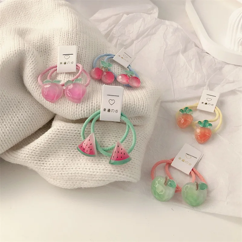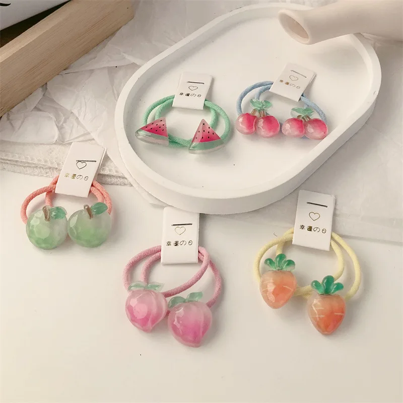 Nice Korean fruit headband for kids, elastic necktie for kids, cherry hair rope, hair ring, carrot headband, 10