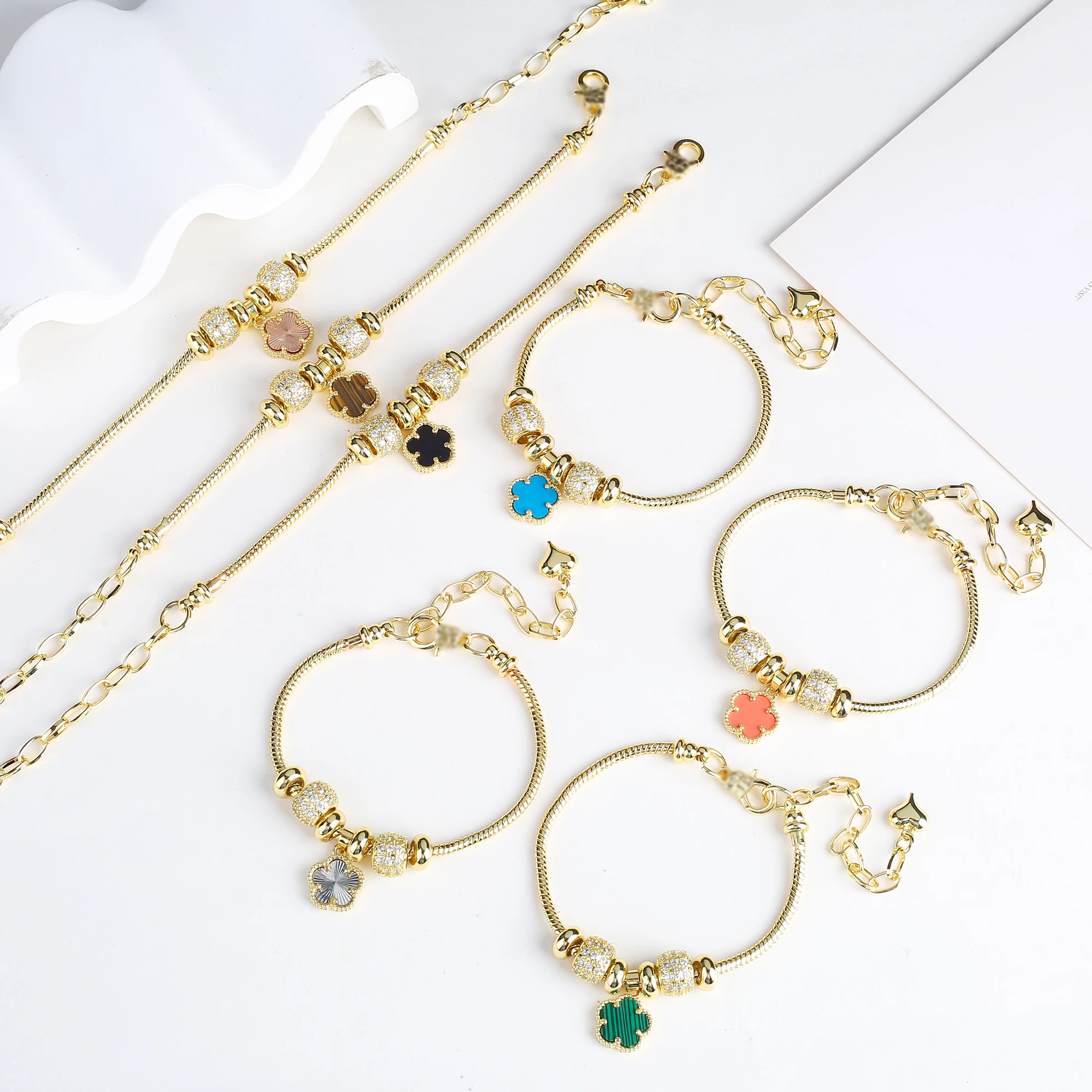 Shiny zirconia bracelet snake chain for women and girls, classic jewelry, wedding, luxury brand, 5 flower stone leaves.