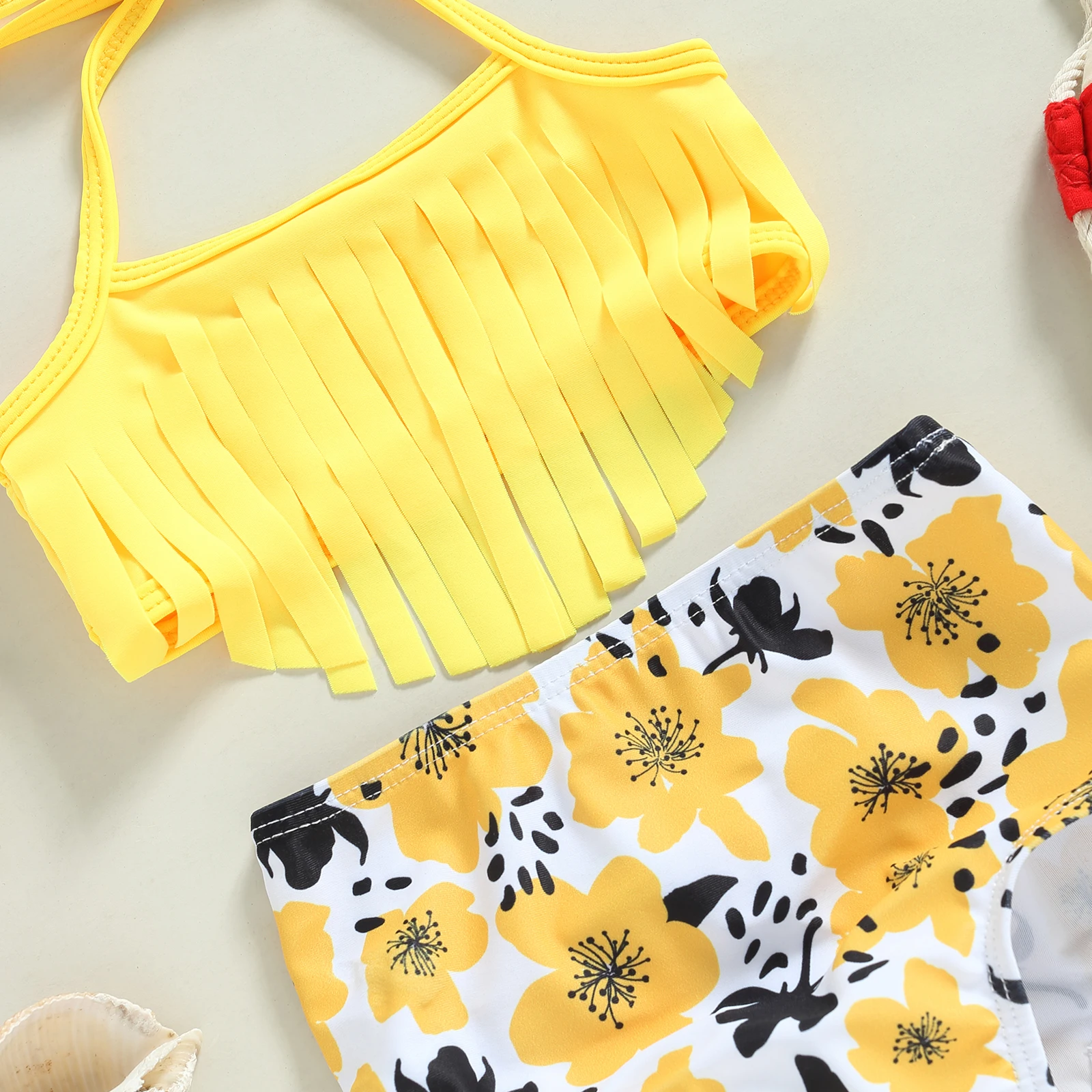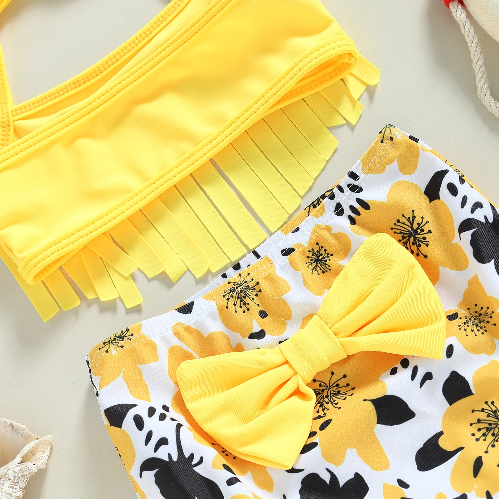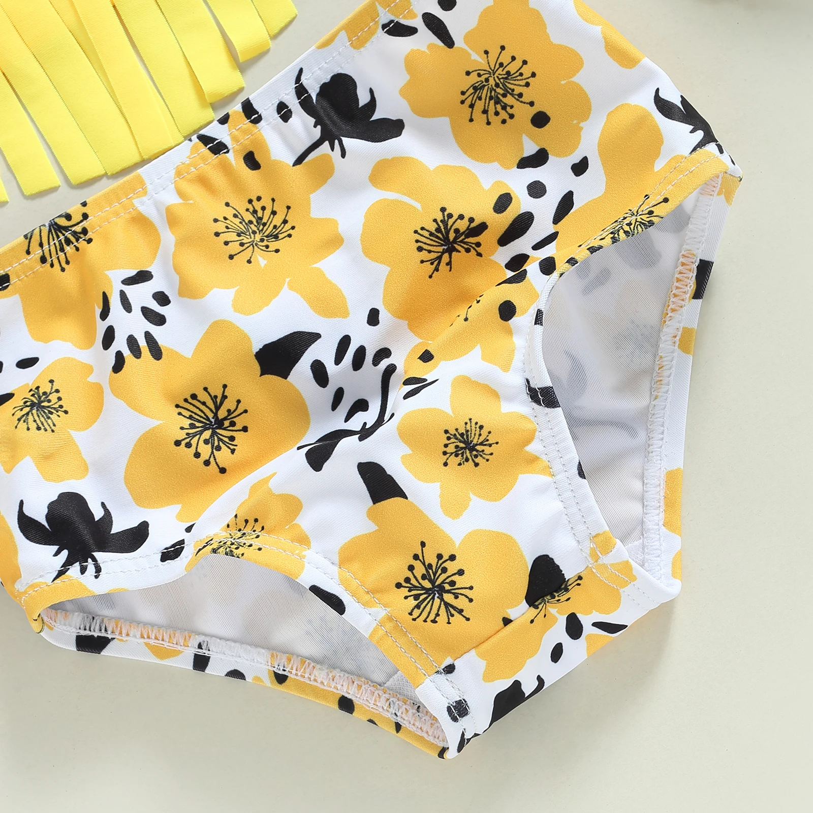 Girls' Child 3 Piece Swimsuit Set with Fringe Color Strawberry/Flower Print Shorts Headband Split Swimsuit
