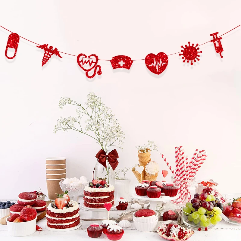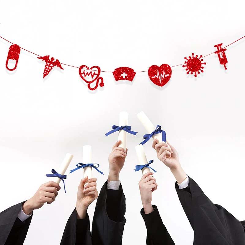 Flashing red congratulations to doctors, nurses, and decorations for graduation parties in medical schools.