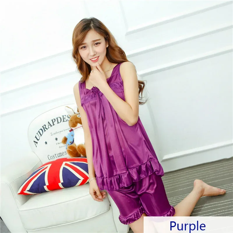 Set of women's pajamas made of synthetic silk, sexy sleepwear, women's nightwear, lace tops and shorts, wonderful, summer.