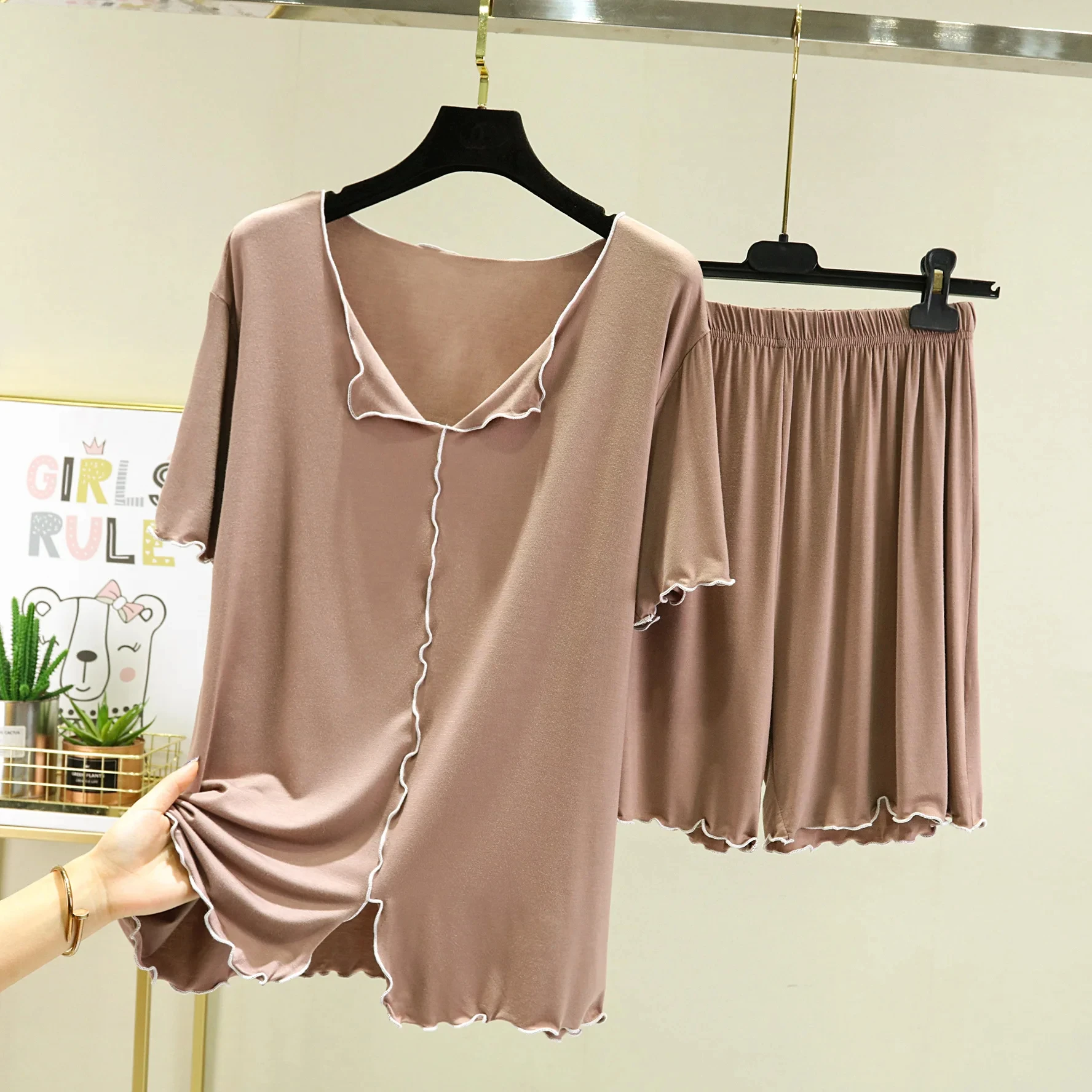 Loose women's pajama set with short sleeves, delicate style, summer home wear, matching, outdoor, casual, two.