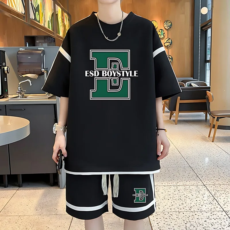 New summer sports set for men for , Korean sports set, breathable t-shirt and shorts two-piece set, new soft streetwear set for men.