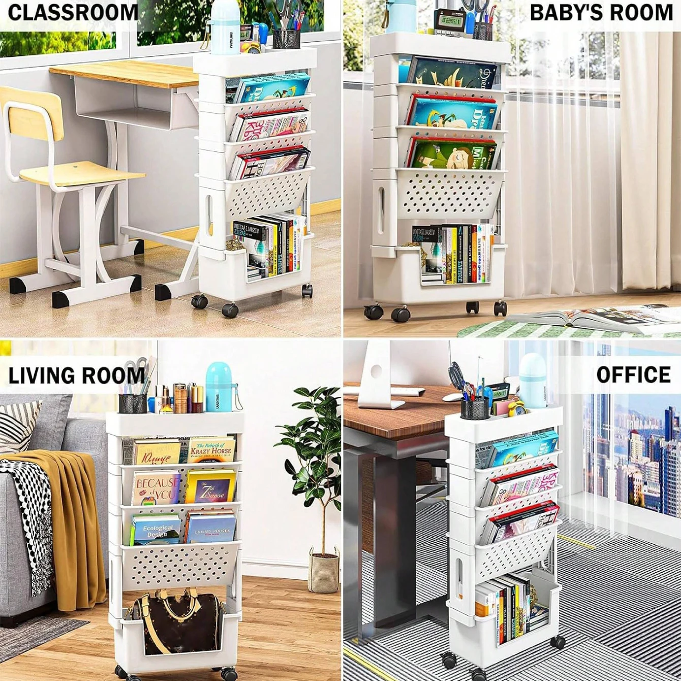 1 قطعة 5 الطبقة رف كتب تخزين رف الكتب ، متعدد الطبقات قدرة للتدوير القابلة للإزالة البلاستيك العملي المتداول المنظمة