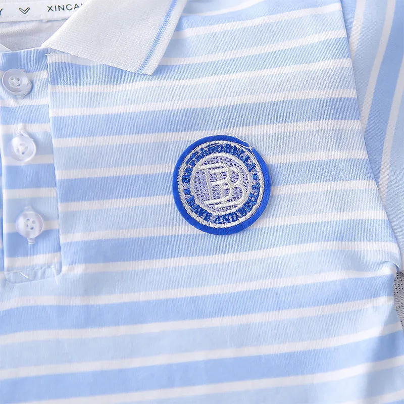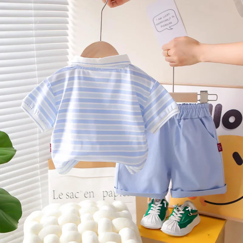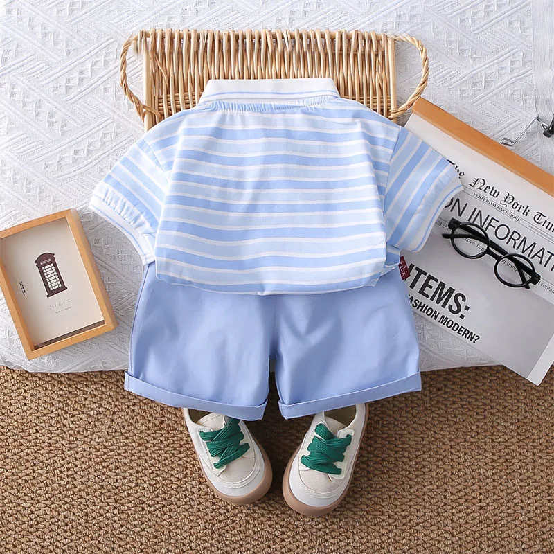1 مجموعة الأولاد الترفيه مجموعة الأزياء شريط الأطفال قصيرة الأكمام السراويل مجموعات الصيف الاطفال ملابس الطفل المحملة + سراويل قصيرة رياضية