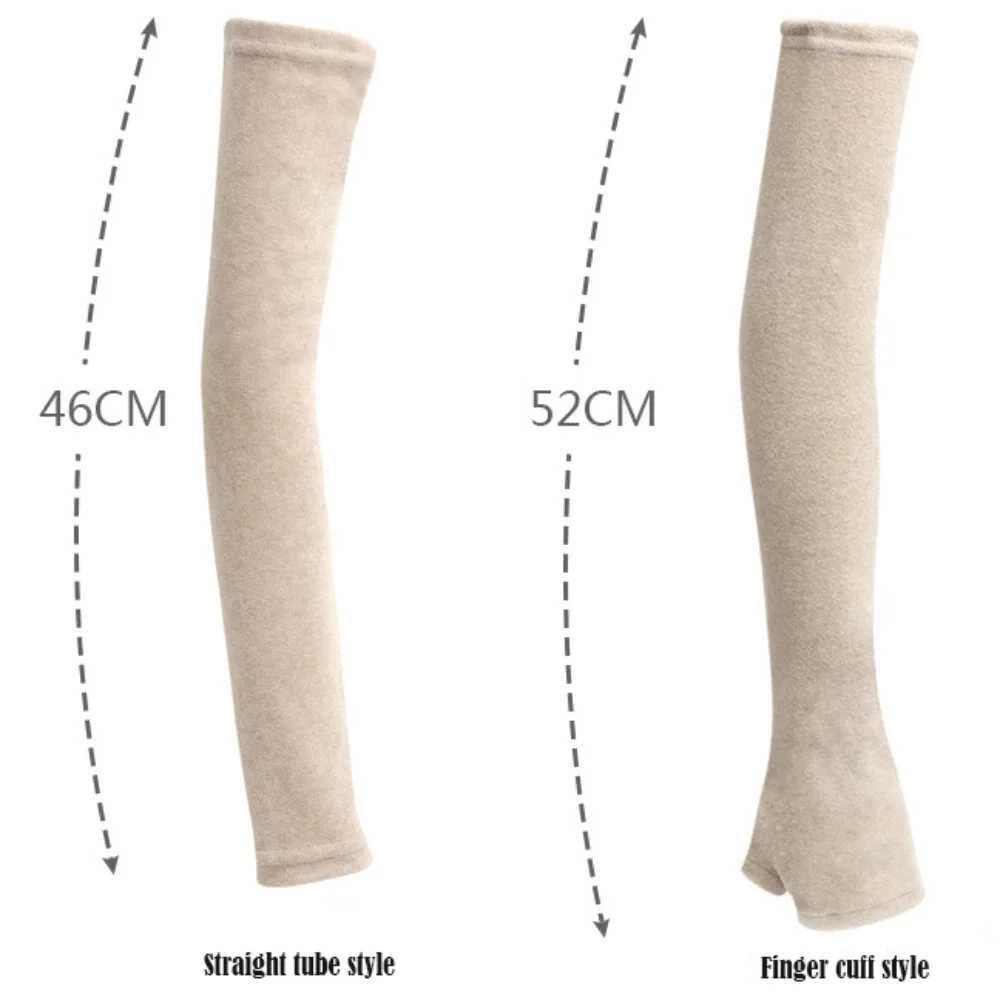 1 زوج الشتاء أكمام أذرع تبريد سميكة الباردة واقية الكشمير النساء الرجال الشتاء الأكمام ثقب الإبهام أصابع الحرارية مدفئات للذراع