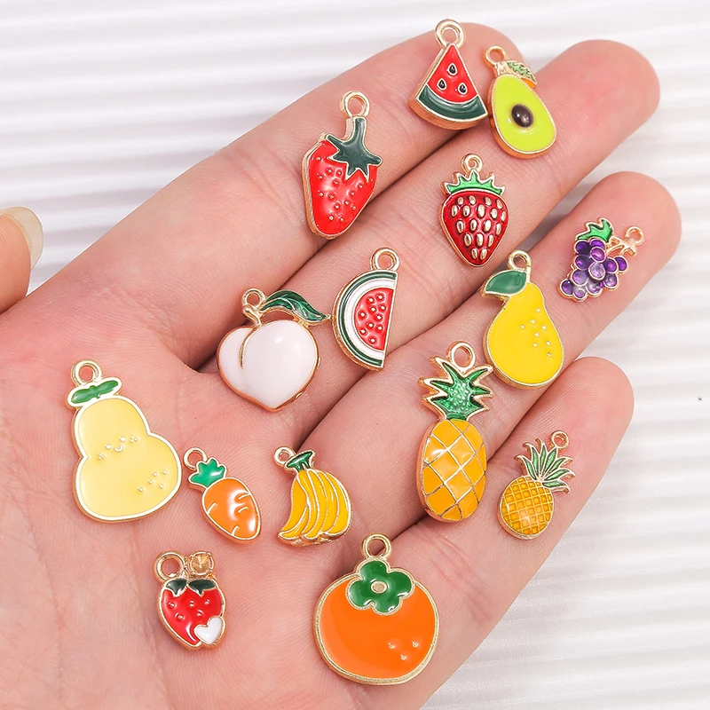 10 قطعة/الوحدة مزيج لطيف المينا الفاكهة التفاح الكرز الأناناس العنب سحر لصنع المجوهرات النساء الأقراط المعلقات القلائد الهدايا