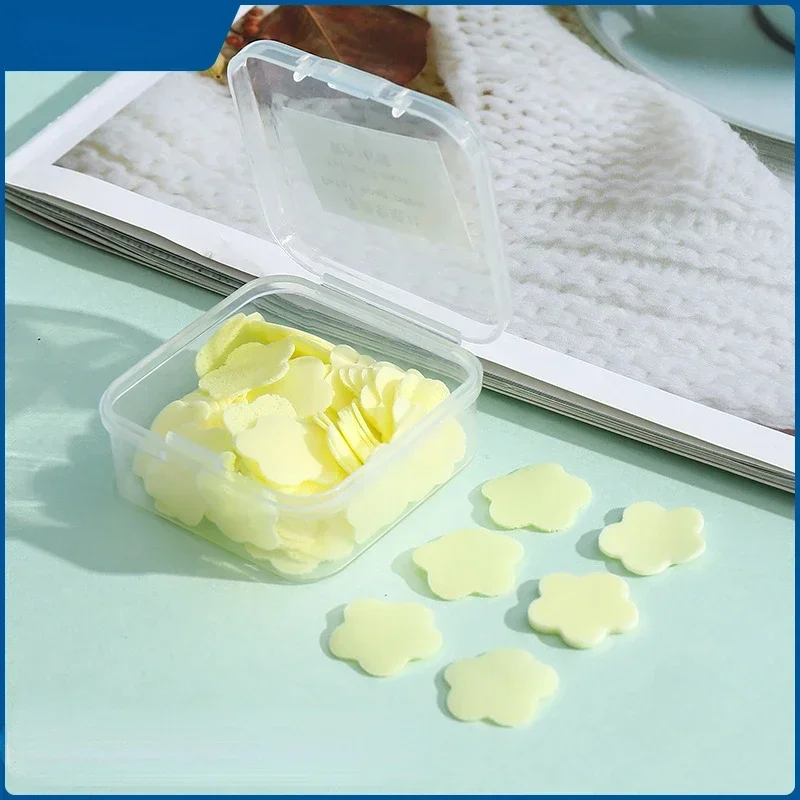 100 قطعة/صندوق المتاح البتلة الصابون رقائق المحمولة غسل اليد المرحاض الصابون شريحة السفر المنزلية الجلد ودية الطازجة الصابون ورقة