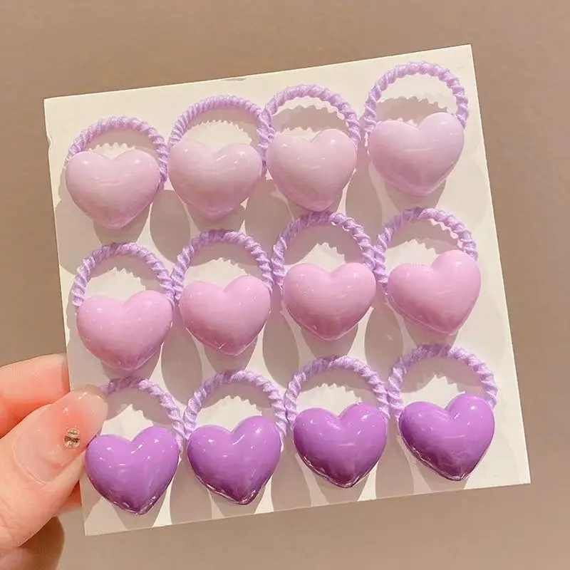 12 قطعة جميلة الحلوى الملونة على شكل قلب الفتيات مرونة العصابات الشعر الأميرة إكسسوارات الشعر الأطفال العلاقات الشعر الطفل أغطية الرأس