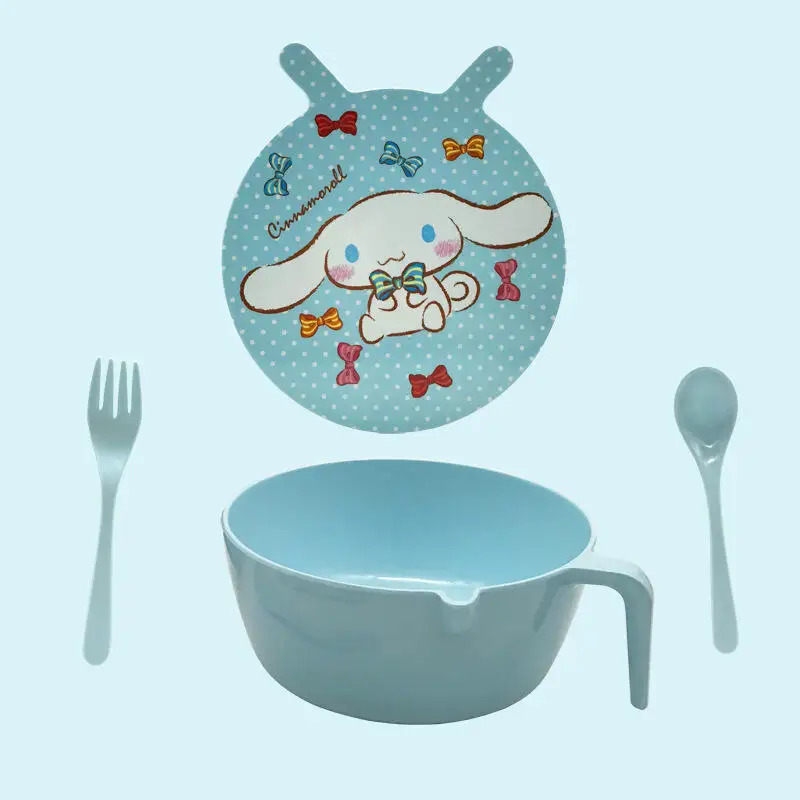 1500 مللي سانريو هيلوكيتي كورومي وعاء المعكرونة ملعقة شوكة مجموعة سعة كبيرة مع مقبض عنبر وعاء الحساء الطفل الكبار أدوات المائدة