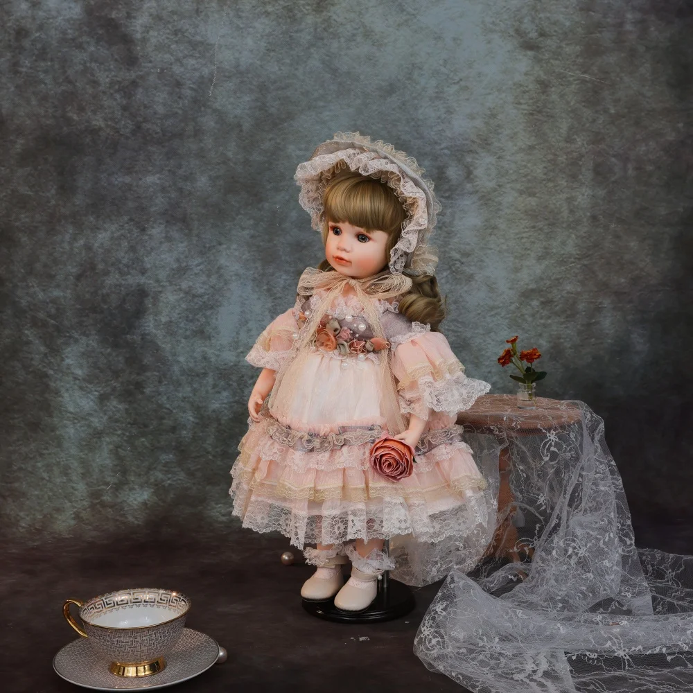 18 بوصة البرسيم Kawaii الخزف دمية اليدوية السيراميك الرجعية قصر الدمى غرفة ديكور اللعب الأعمال الفنية اليدوية الهدايا مع حامل