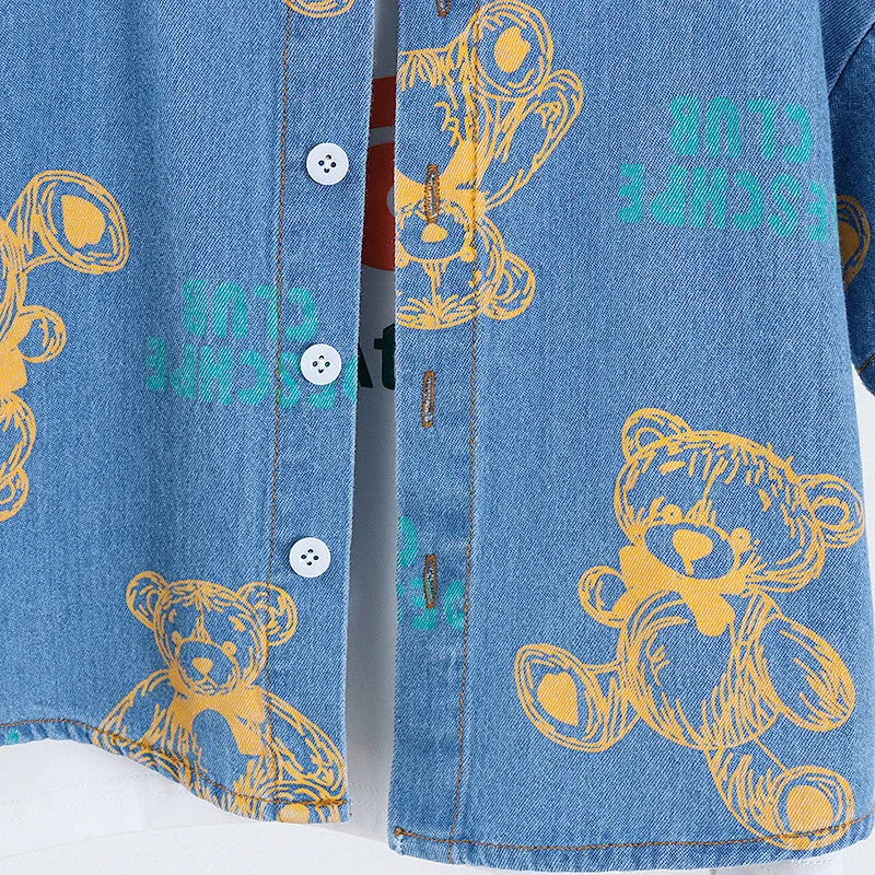 2-6Years جديد الصيف الفتيان الدنيم مجموعة ملابس الأطفال موضة الكرتون الدب تي شيرت السراويل 2 قطعة الرضع طفل ملابس غير رسمية الدعاوى