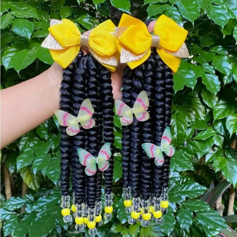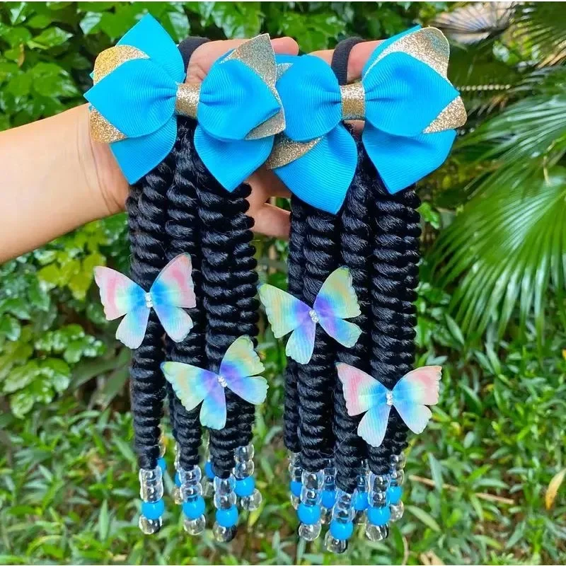 2 حزمة شعر 8 بوصة ذيل حصان مضفر للأطفال مع خرز وفيونكة مخصصة للأطفال ذيل حصان مضفر مع سرير خرز وفراشة