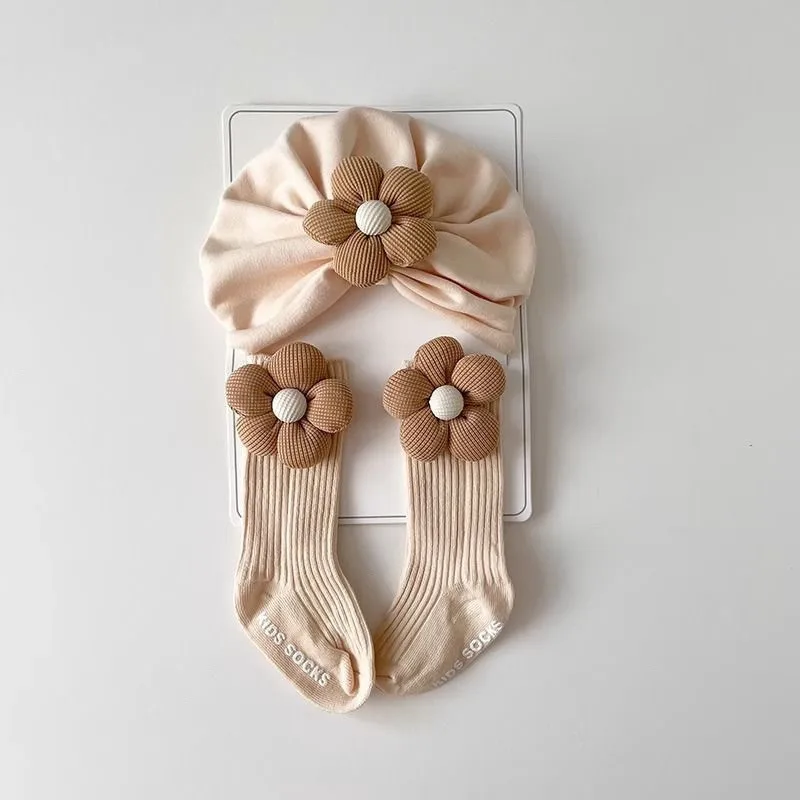 2 قطعة قبعة الطفل الجوارب مجموعة أزهار لطيفة الرضع الفتيات عمامة قبعة لينة الوليد طفل قبعة مرنة المضادة للانزلاق الجوارب