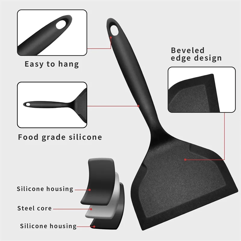 2 قطعة ملعقة سيليكون تيرنر مقاومة للحرارة غير عصا فطيرة ملعقة واسعة ورقيقة الفطائر ملعقة تيرنر لبيض الأسماك البيتزا