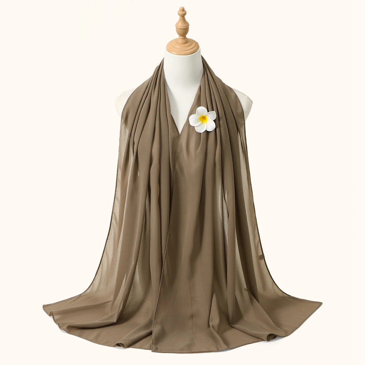 2 قطعة/المجموعة Soild وشاح شيفون مع دبابيس زهرة حجاب إسلامي المرأة شالات طويلة الإسلام لينة أغطية الرأس عصابات عقال Turbante