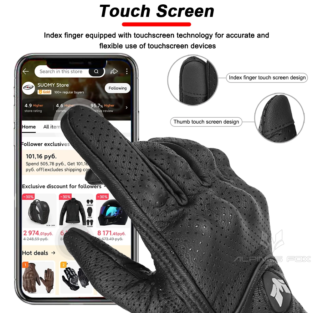 1.شاشة تعمل باللمس: تستخدم قفازات الدراجات النارية لدينا مادة قابلة للمس بين أصابع الإبهام والسبابة.يمكنك استخدام هاتفك لضبط جهاز الملاحة دون خلع القفازات.