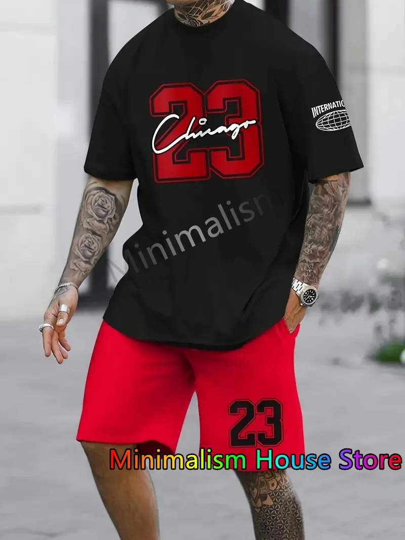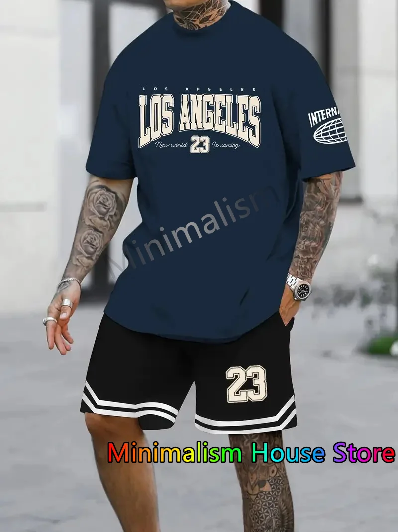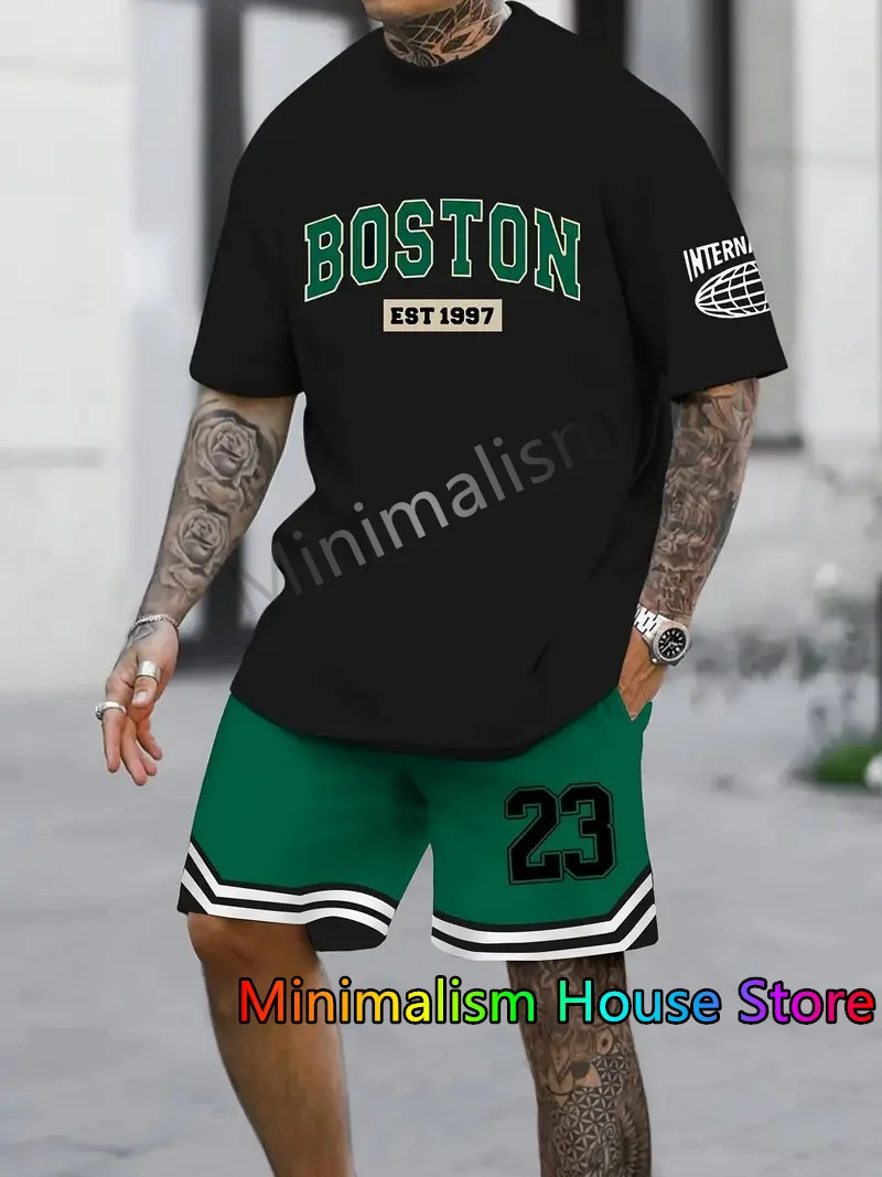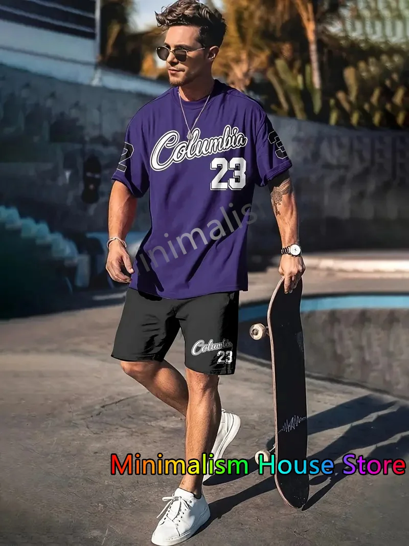 ملابس جديد لرجال رياضية مجموعات تي شيرتات قصيرة الاكمام غير رسمية الرياضة مطبوعة الشهير السراويل 2 قطعة ملابس