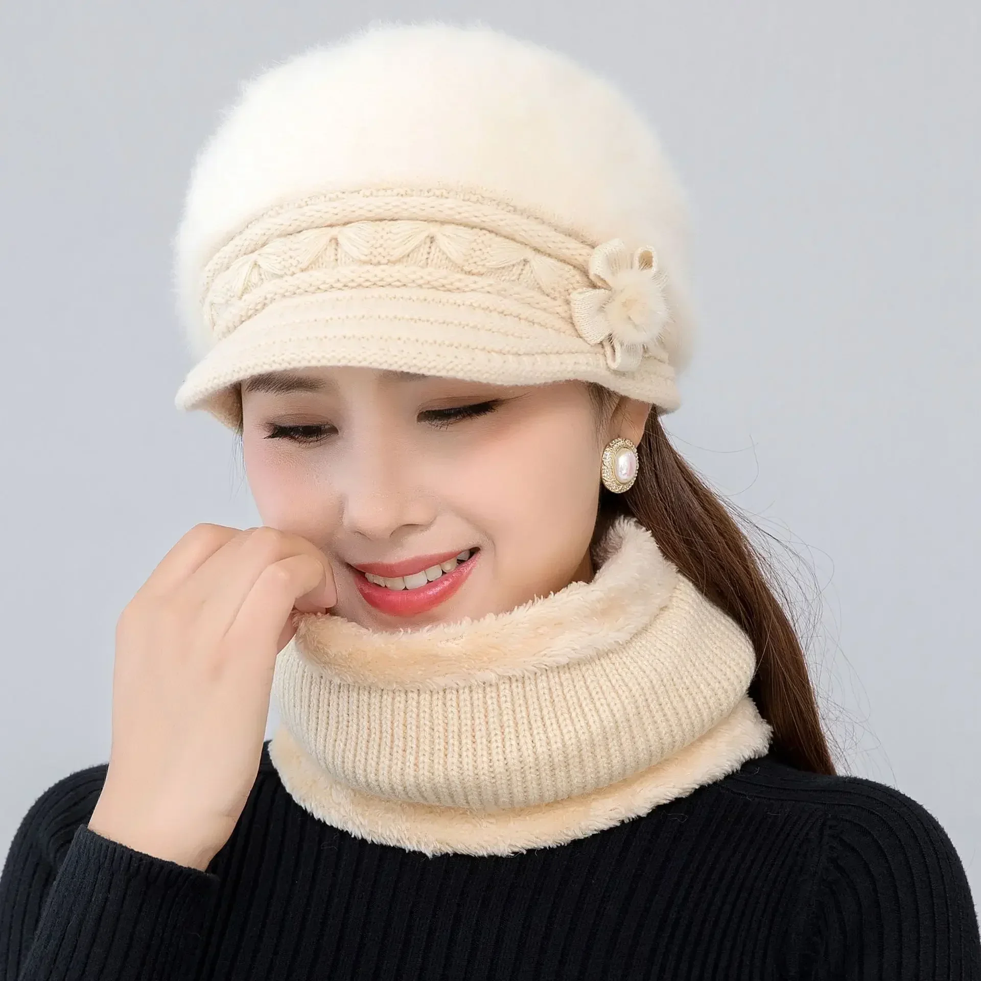 حار المرأة الشتاء قبعة الدفء قبعة الفراء اصطف قبعة ووشاح مجموعة القبعات الدافئة للإناث عادية الأرنب الفراء الشتاء محبوك قبعة