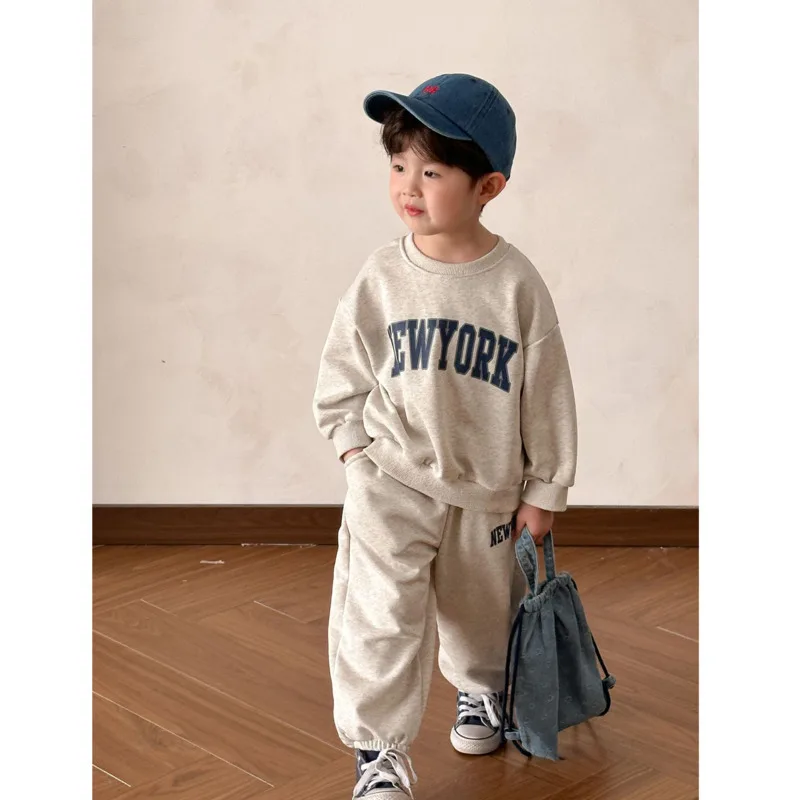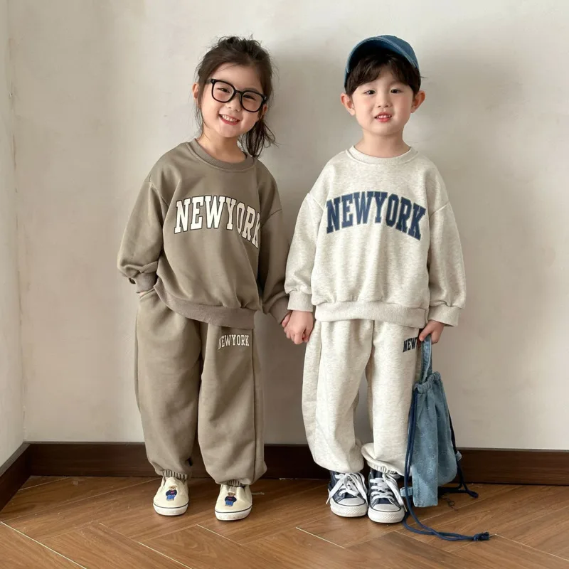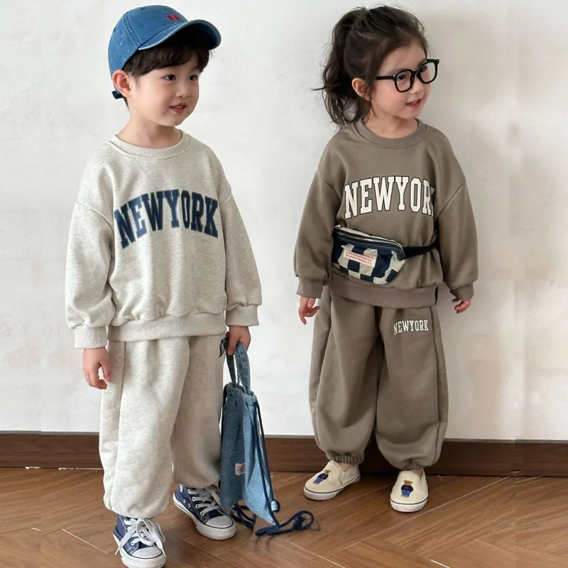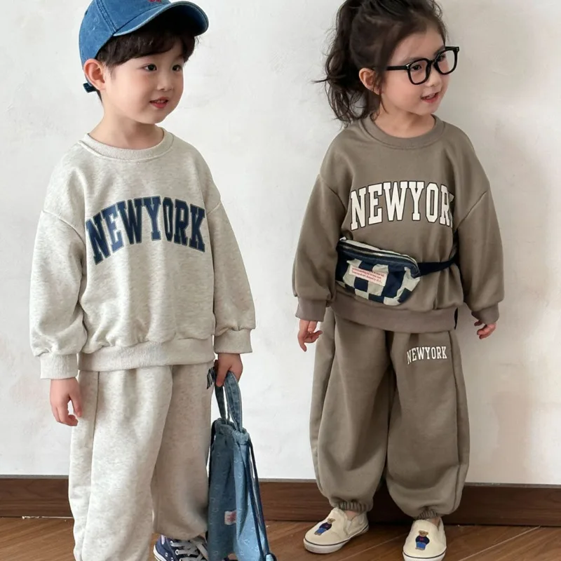 2025 الخريف الشتاء القطن 2 قطعة مجموعة صبي فتاة فضفاضة رياضي الزي الطفل عارضة البلوز البلوز أعلى 3-10 سنوات البلوز أسفل