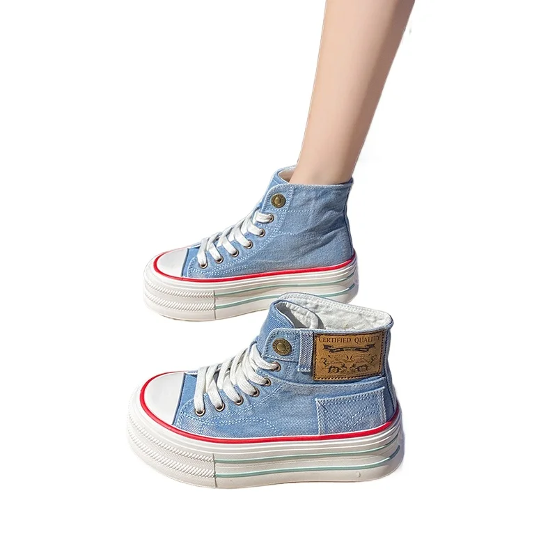 الخريف حذاء قماش الدنيم موضة سميكة سوليد زيادة أحذية رياضية غير رسمية منصة عالية النساء أحذية رياضية