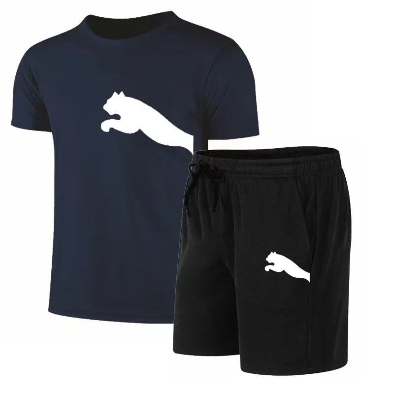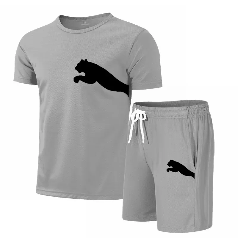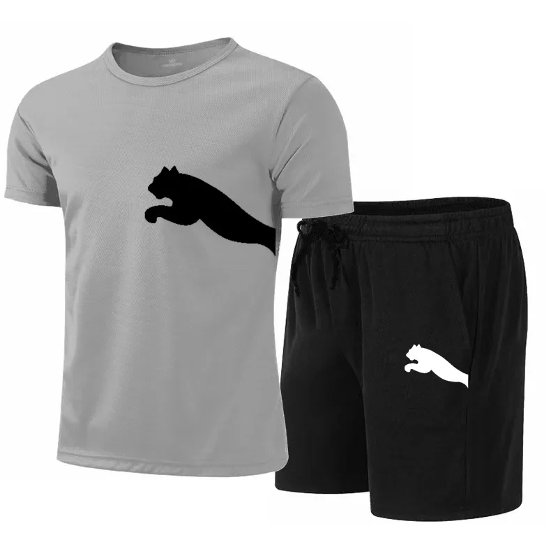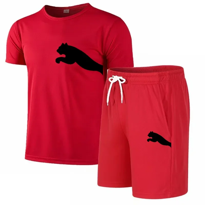 الصيف الجري اللياقة البدنية الترفيه ملابس رياضية قطعتين الرجال تنفس قصيرة الأكمام تي شيرت + مجموعة تي شيرتات قصيرة التجفيف السريع